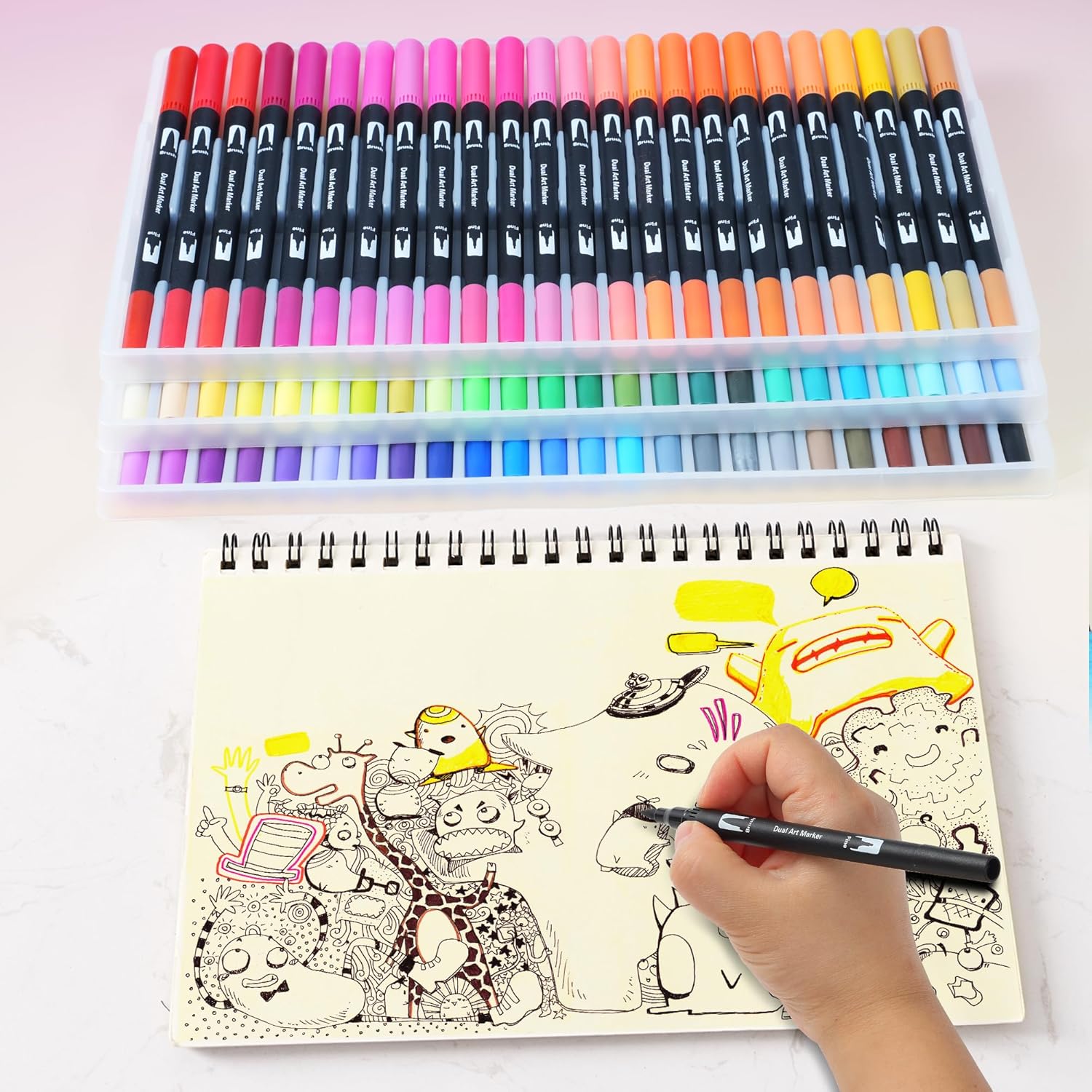 72 Colors Dual Tip Markers Set, Water-Based Ink Brush & Chisel Double Tipped Art Markers for Kids Adults Beginners & Artists in Sketching, Coloring, Note-taking