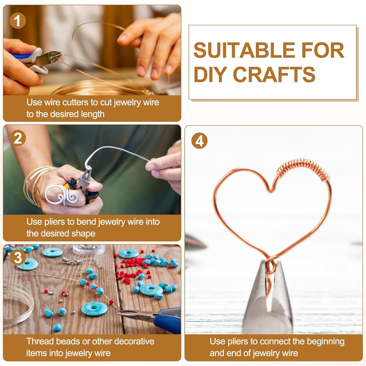 - High Flexibility and Plasticity- Jewelry wire has excellent flexibility, easy to bend and shape, and can be repeatedly adjusted without breaking. The surface is smooth, easy to cut and shape, suitable for beginners and professional designers.Strong Durability- Made of premium copper material, it has high tensile strength and is not easy to break, ensuring the durability and stability of jewelry. Excellent anti-oxidation and anti-corrosion properties.
