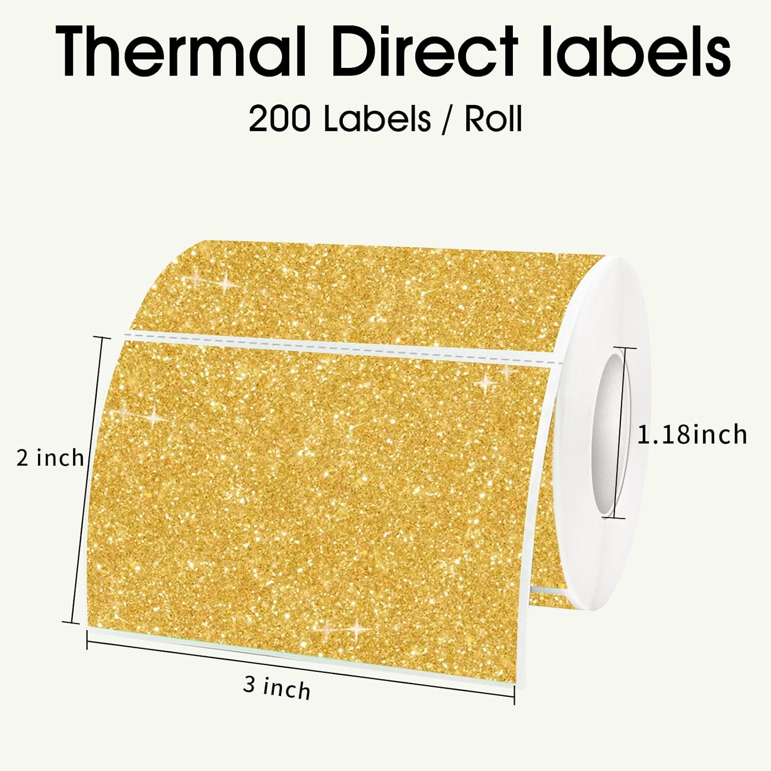 3x2 Inch Holographic Thermal Labels, Glitter Gold Thermal Sticker Labels, Waterproof Thermal Printer Stickers for Price, Barcode, Name, Custom Logo Design, 200 Pcs/Roll