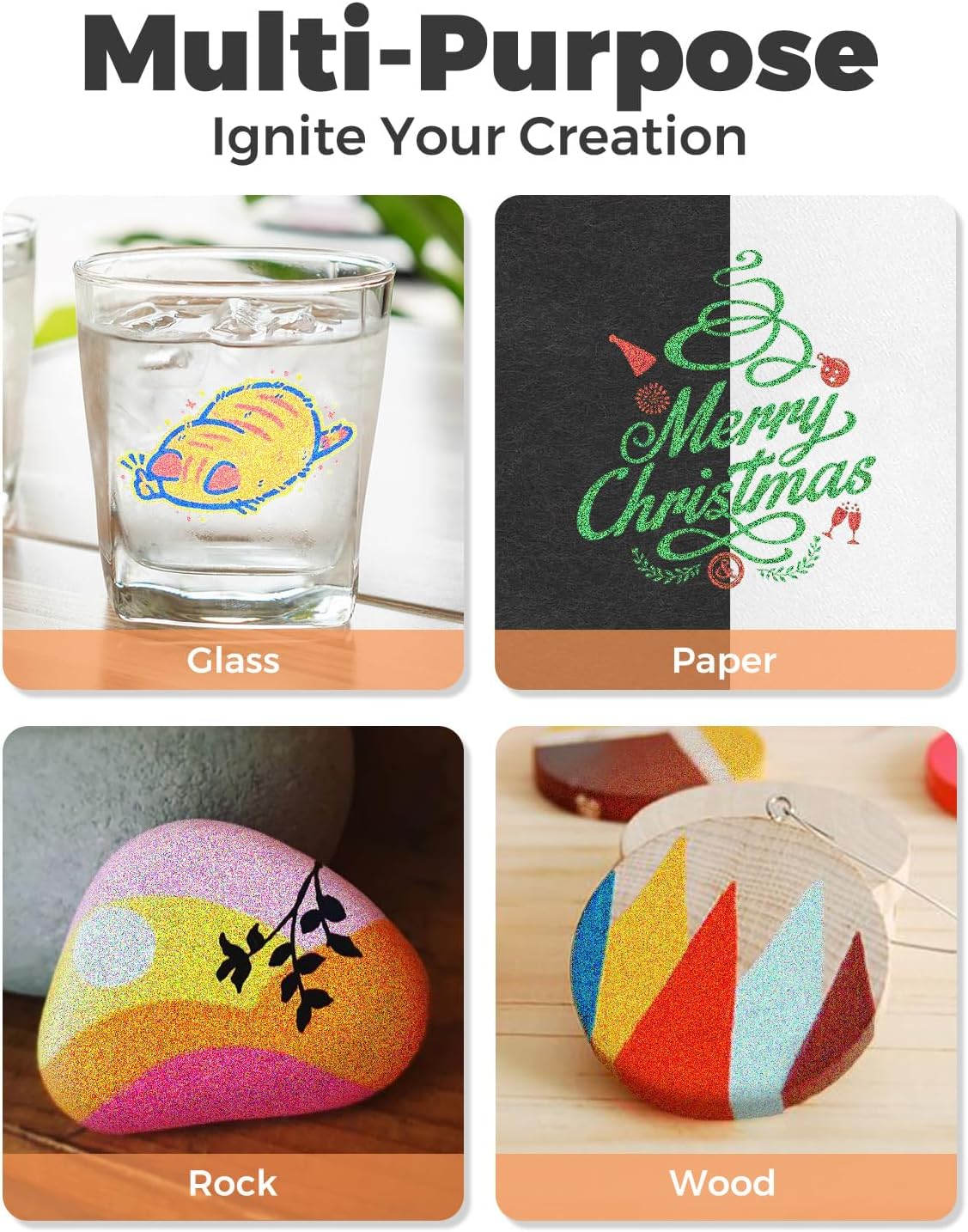- Versatile for Any Surface: These sparkling glitter markers are perfect for casual creativity and can also enhance professional artwork. They are fun to use on a variety of surfaces, including glass, wood, stone, fabric, paper, scrapbook journals, and photo albums, providing endless possibilities for your projects