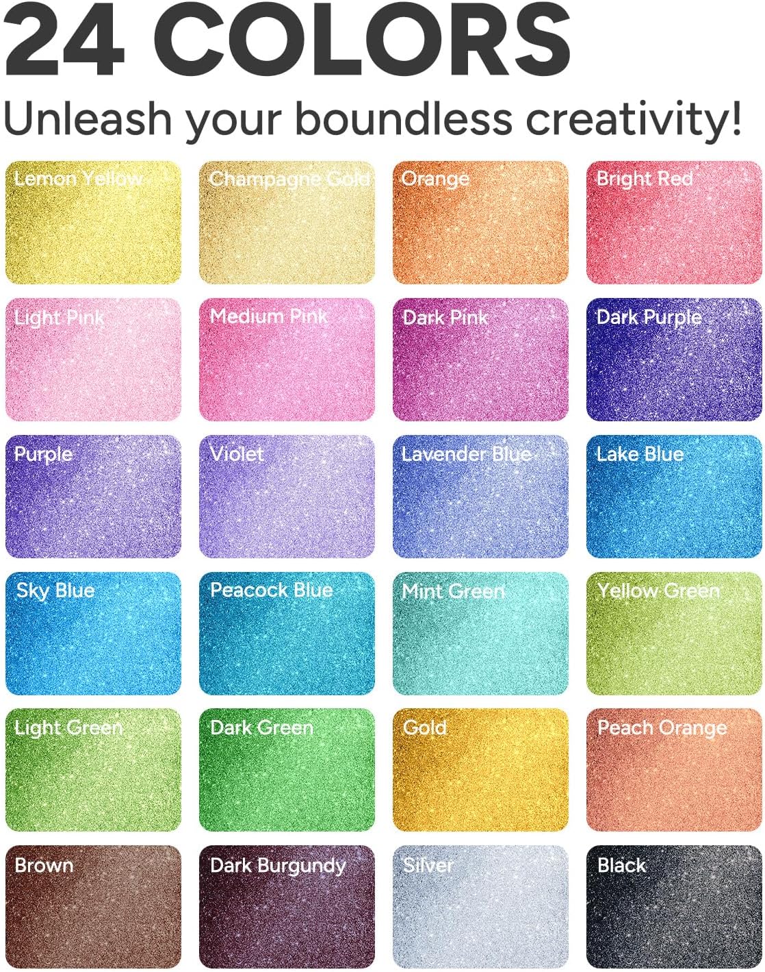 JusArt 24 Colors Glitter Markers, 0.7mm Extra Fine Tip Acrylic Glitter Pens, Metallic Shimmer Marker for Kids Adults DIY Crafts Making, Drawing, Scrapbooking Supplies, Rock, Wood, Glass, Fabric