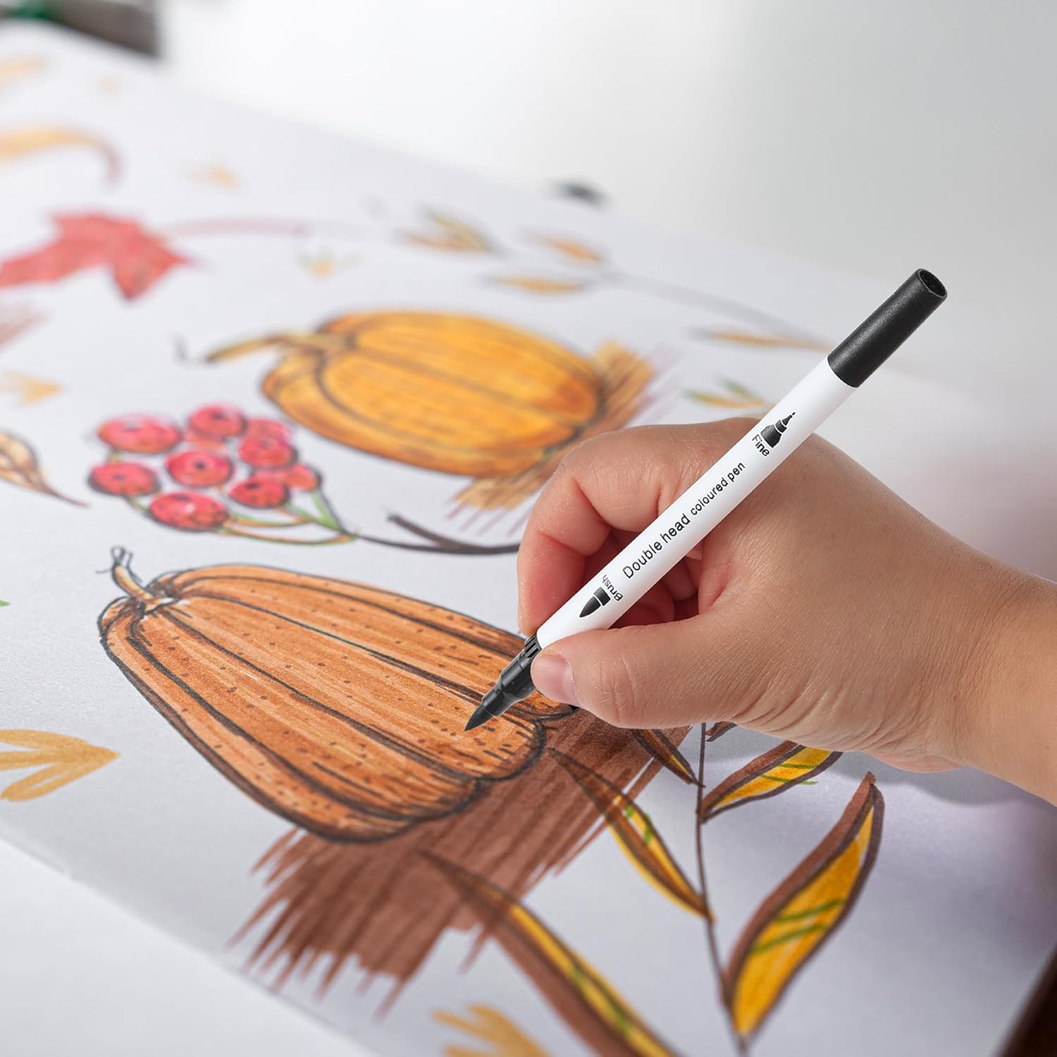 100 Colors Dual Brush Markers for Adult Kids Coloring Books, Water-Based Ink Art Marker Pens Set with Fine & Brush Tips for Bullet Journaling, Drawing, Hand Lettering, Sketching