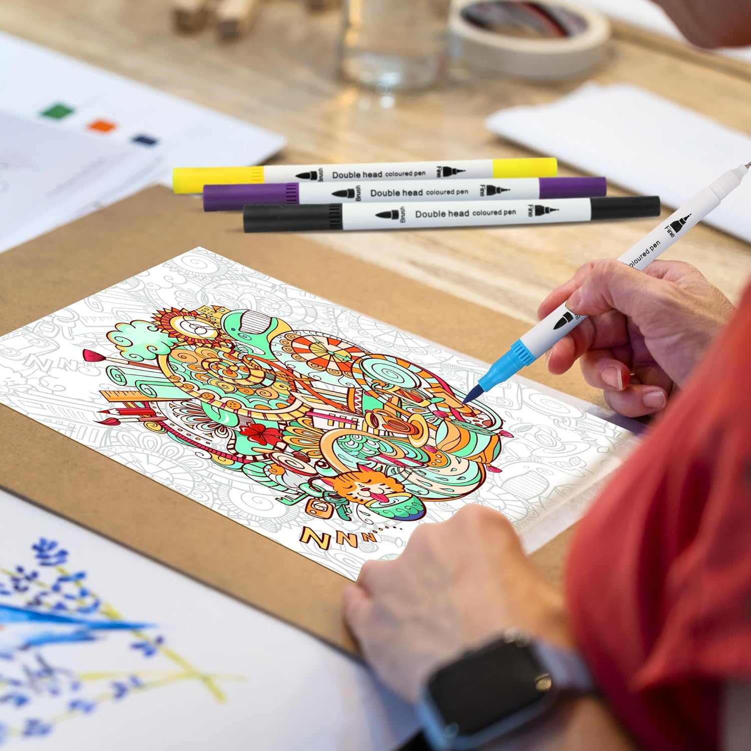 - ✍Fine & Broad Dual Tips - The brush tip (0.4mm) is perfect for blending, shading, depicting outline details in coloring, drawing books. The Broad tip(1-4mm) is wonderful for coloring, shading, covering larger areas quickly and marking the keywords, texts or the paragraphs. These watercolor marker pens are very practical and multi-purposed.