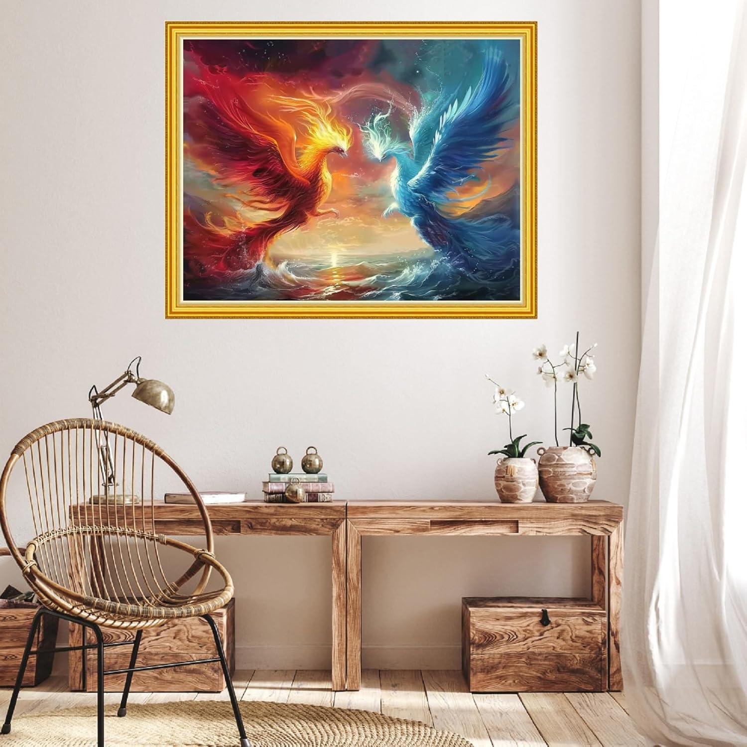 Hopeart Stamped Cross Stitch Kits for Beginner Embroidery Kits for Beginners Adults DIY 11CT Cross Stitch Patterns Needlepoint Kits Crossstitching Kits-Sea Phoenix 16x20 inch