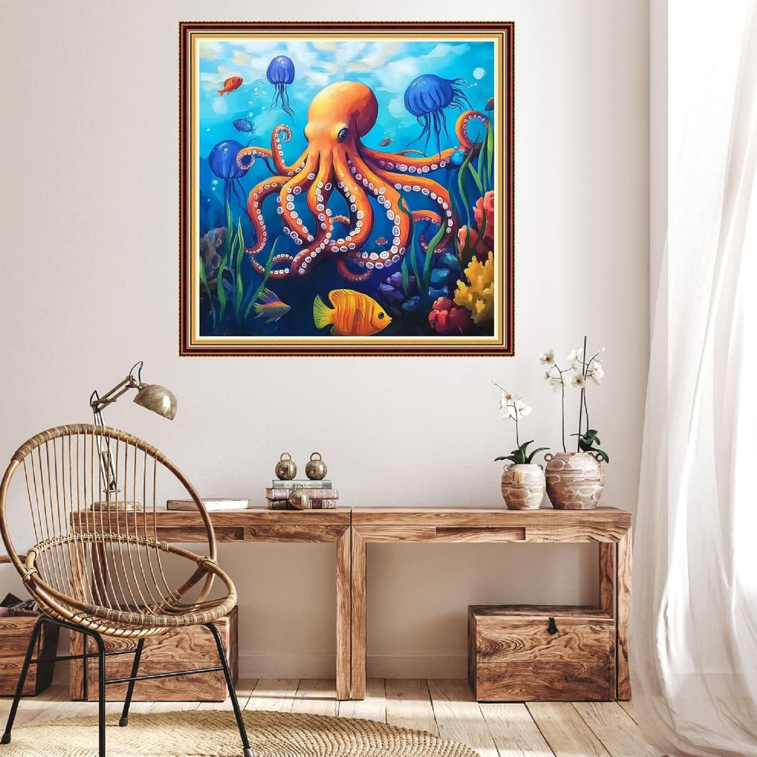 Hopeart Stamped Cross Stitch Kits for Beginner Embroidery Kits for Beginners Adults DIY 11CT Cross Stitch Patterns Needlepoint Kits Crossstitching Kits-Underwater World 18x18 inch