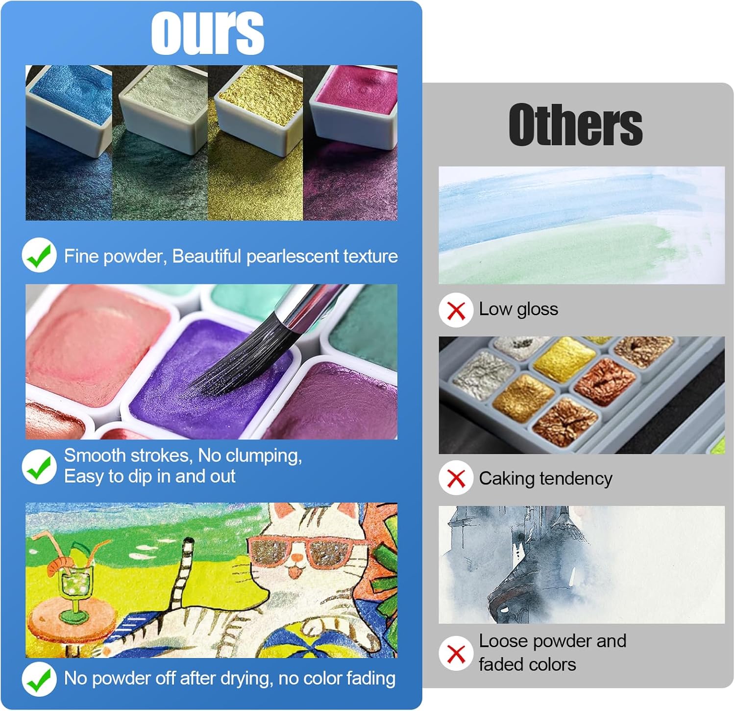 - 【Exceptional Shimmering Texture】: CraftyManor Pearlized Watercolors are formulated with premium, modified mica powder, resulting in a stunningly glossy finish. Free of acids and toxins, they are safe to use and will add a radiant touch to your artwork