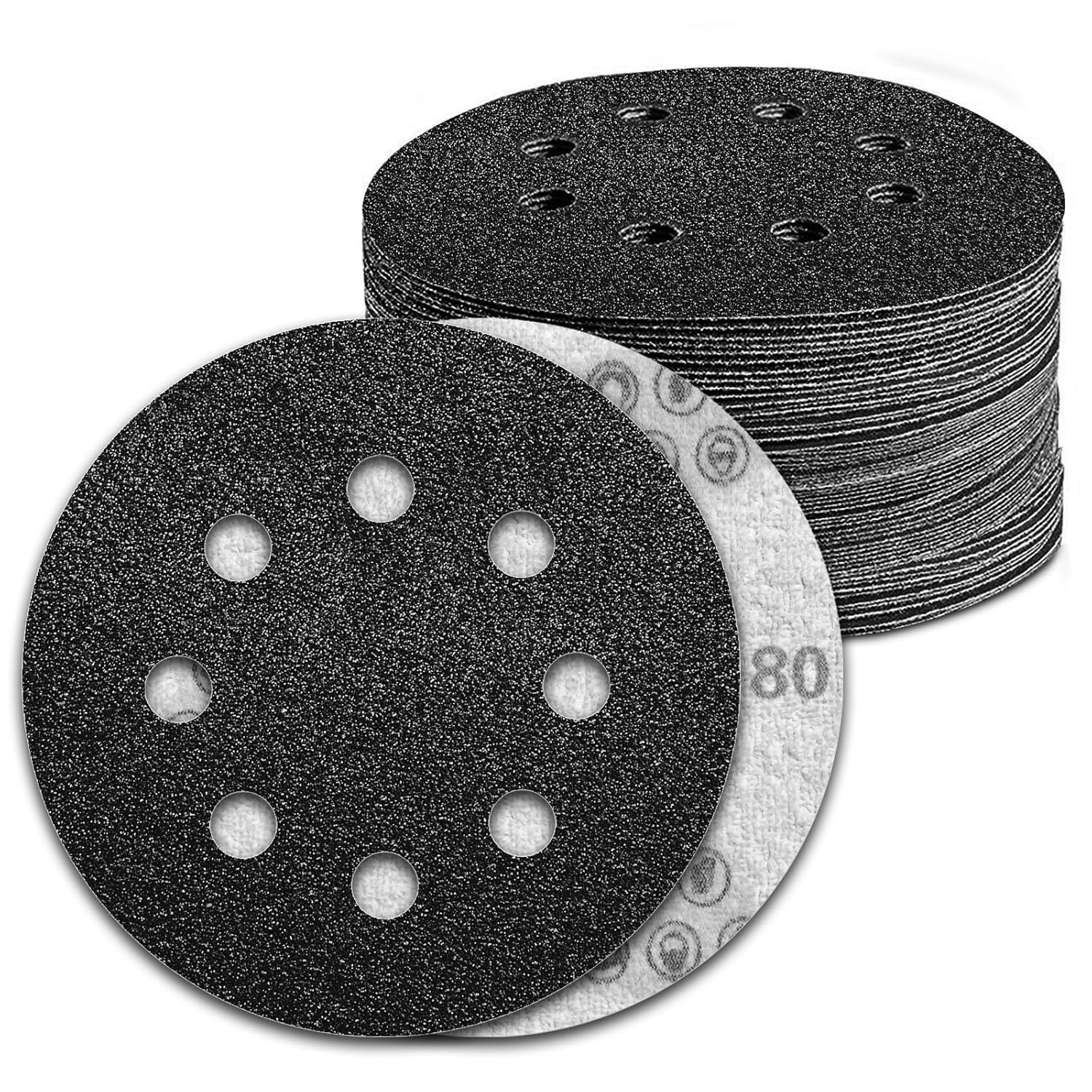 100 Pcs 5 inch Wet Dry Sanding Discs Grit 80 Hook and Loop 8 Hole Silicon Carbide Orbital Sander Sandpaper