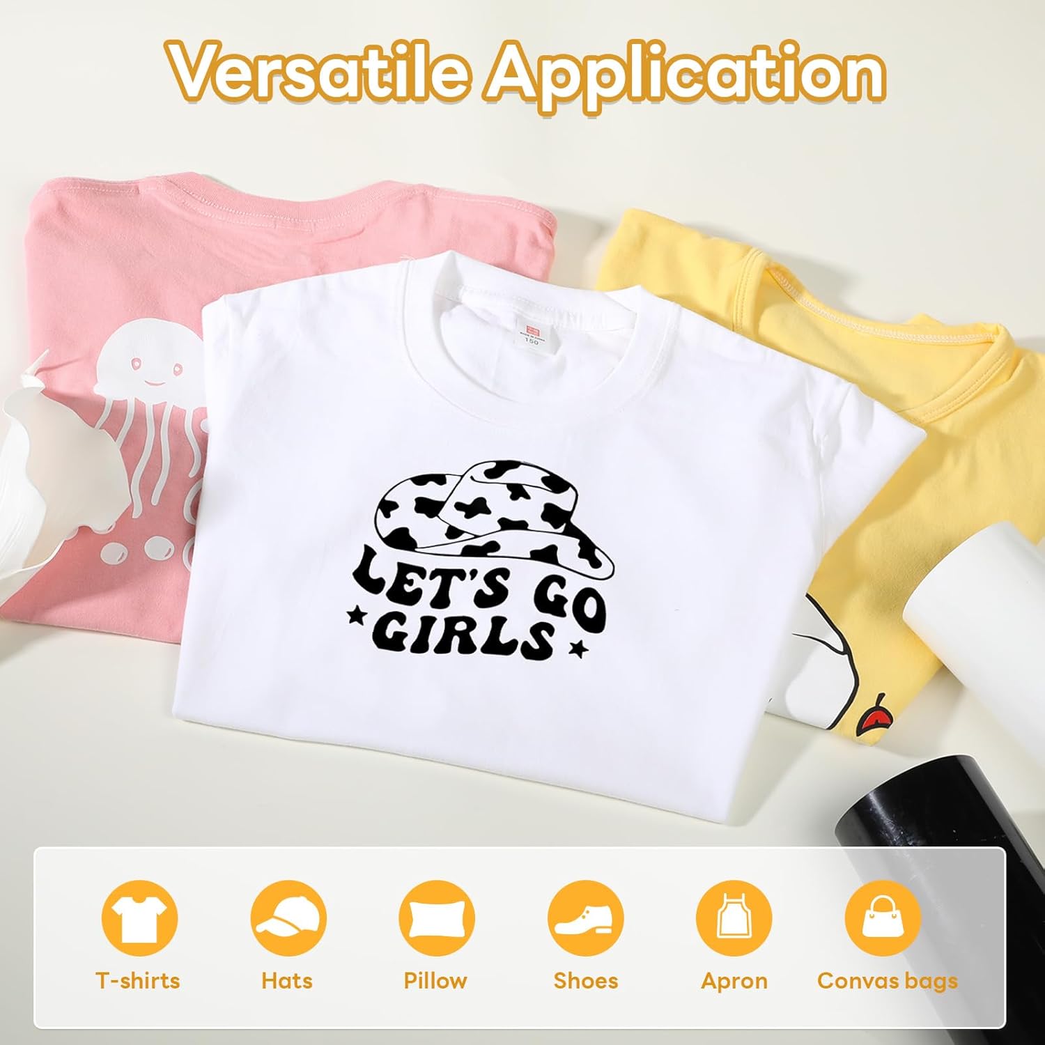 - 【PERSONALIZE GIFT & CUSTOM MADE】 Good choice for Christmas, Halloween and anniversaries gift to your family or lover. I mean, who doesn’t love a fun new t-shirt? And with our black htv heat transfer vinyl, you can easily customize it to be something personal that they will love. If you are not satisfied with our htv black, please feel free to contact us