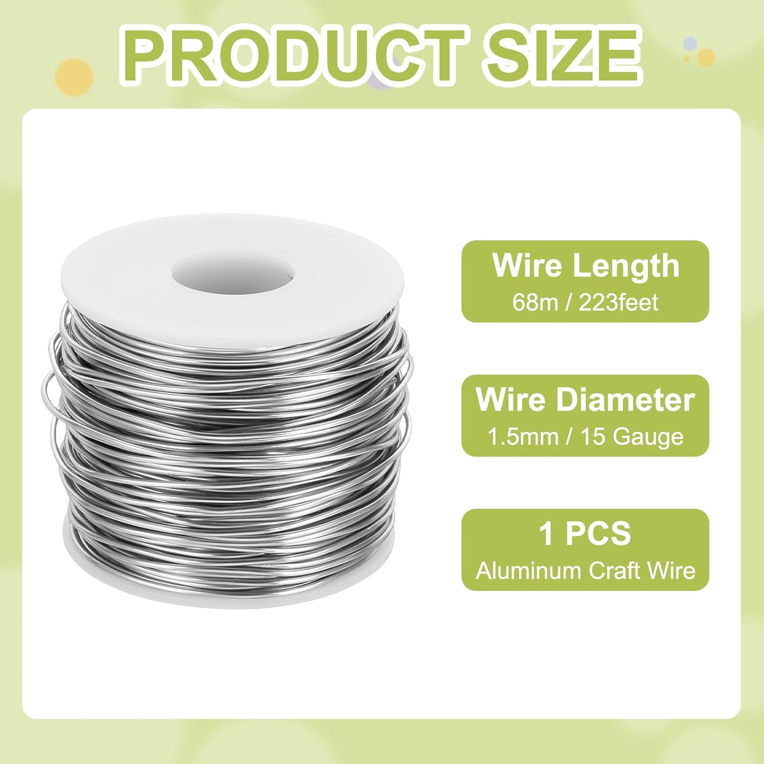 - Package contains 1pcs x Aluminum Craft Wire, wire diameter: 15 Gauge (1.5mm), wire length: 223 Feet (68m)