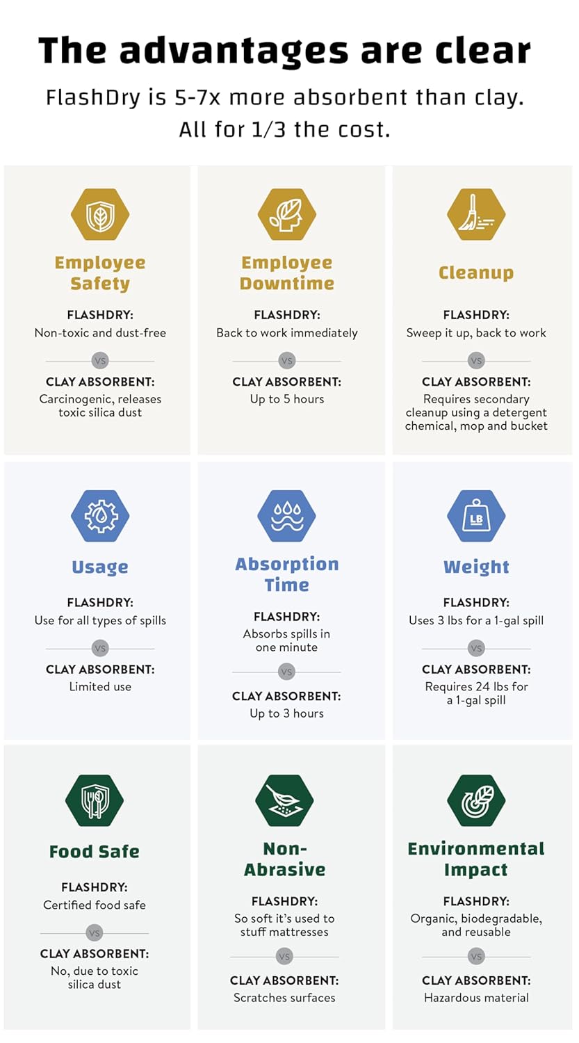 FlashDry All Purpose Organic Industrial Absorbent - 5 Liter Bucket, Case of 2- Instantly Absorbs Liquid Spills - Safer and 5-7x More Absorbent Than Clay - Lightweight & Refillable - OSHA Compliant