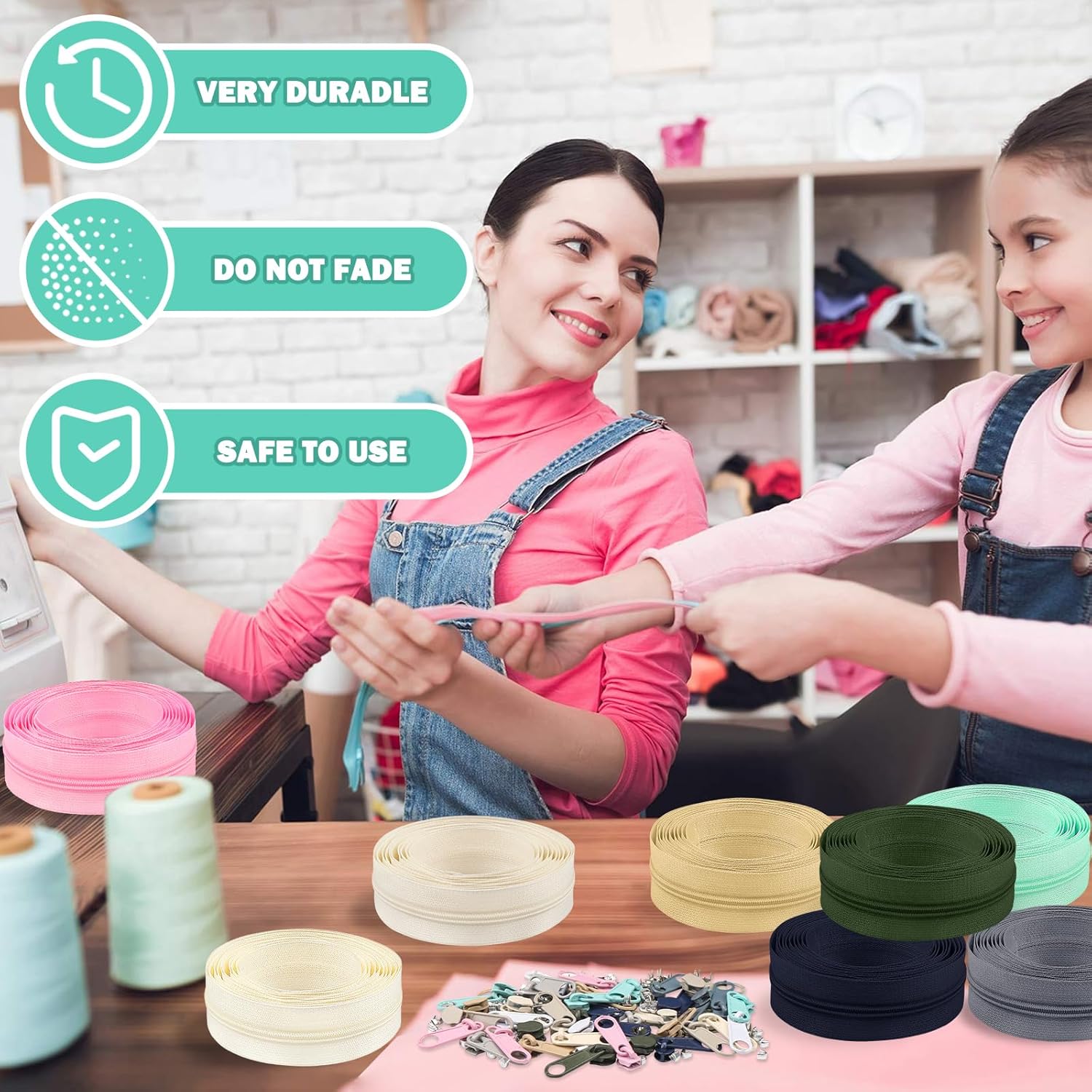 - Adequate to Meet Your Needs: you will receive about 31 yards of nylon coil zipper rolls in 10 different colors, per color a roll and 3.1 yards per roll, come with 40 zipper sliders and 4 per color, enough amount and colors can meet your need and replacements