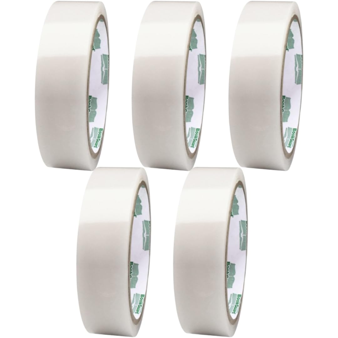 BookGuard 1.5 Inch Transparent Bookbinding Tape, Ideal for Book Repair and Library Supplies, Stretchable and Clear - 15 Yards Librarian Tape Clear - Case of 5