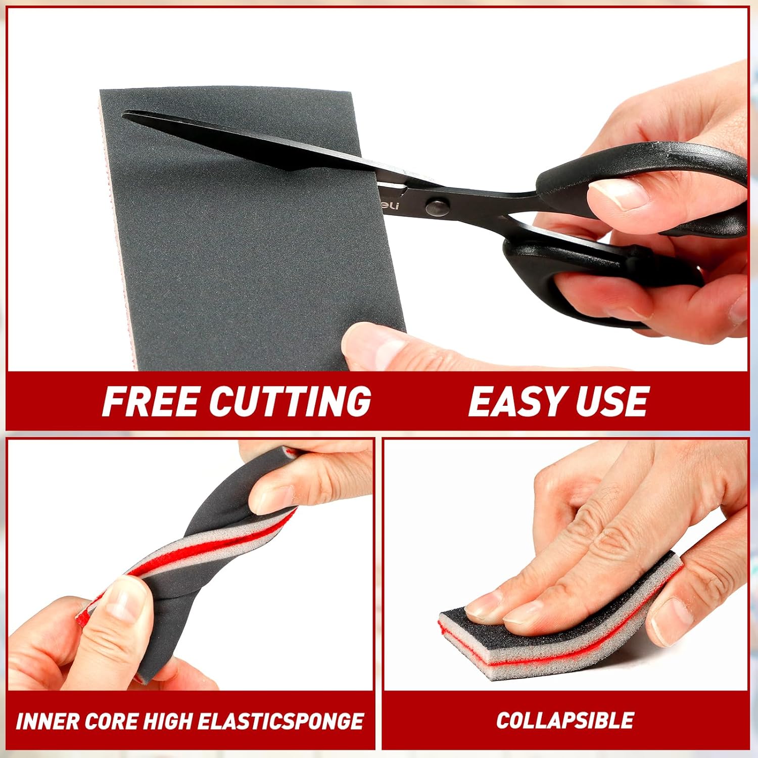 - Ergonomic & Contours Easily: The sanding block shape fits comfortably in hand, while the flexible foam adapts to curves and tight corners, ensuring even sanding on flat or irregular surfaces.