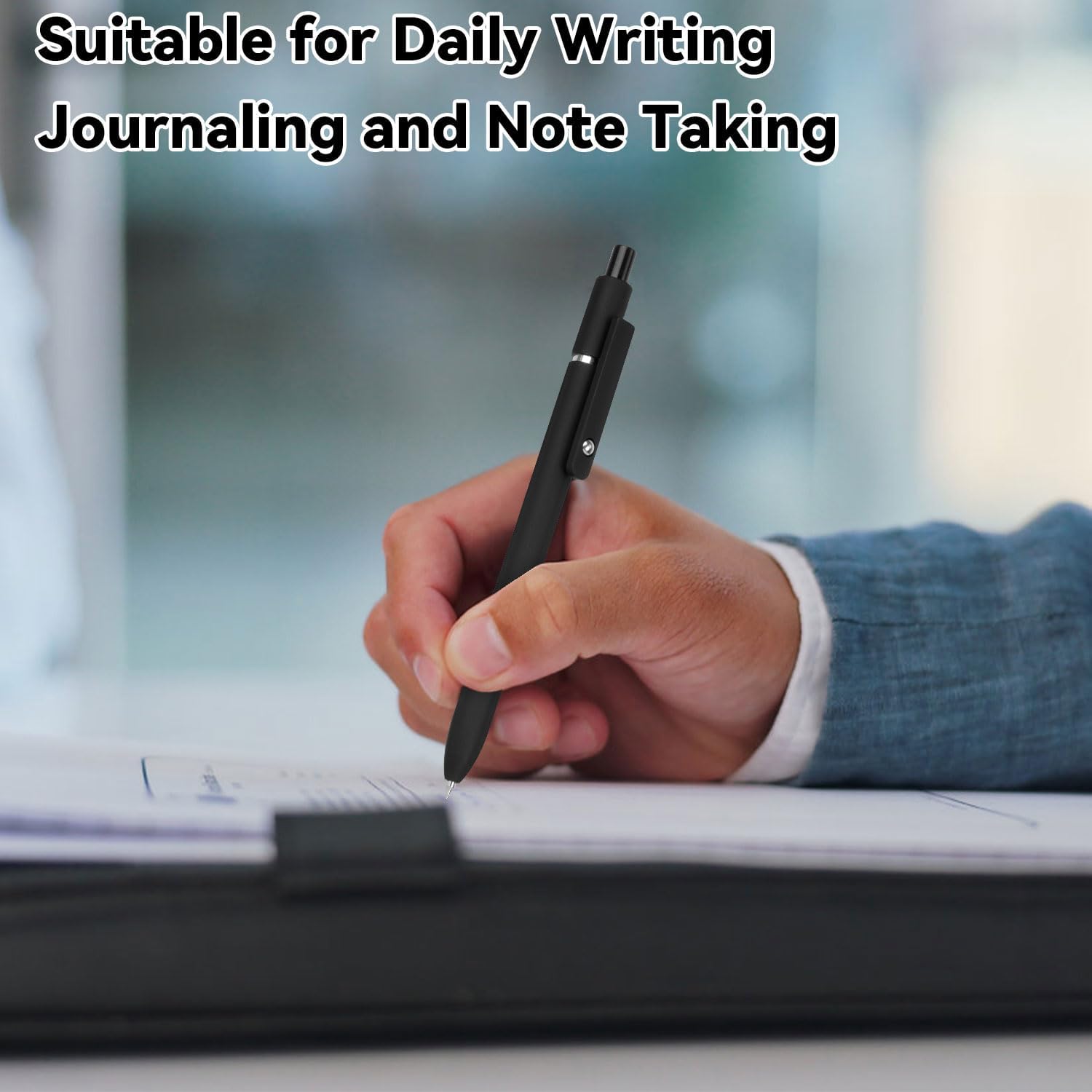 - 0.5mm Fine Point Black Ink Pens:0.5mm Retractable Rolling Ball Gel Pens with fade-resistant ink, there’s no need to worry about getting ink on your hands or desk, as it won’t fade, bleed, or smudge. Note: After using the gel pen, it is suggested to lay the pen flat or the nib face up. This helps protect the pen tip