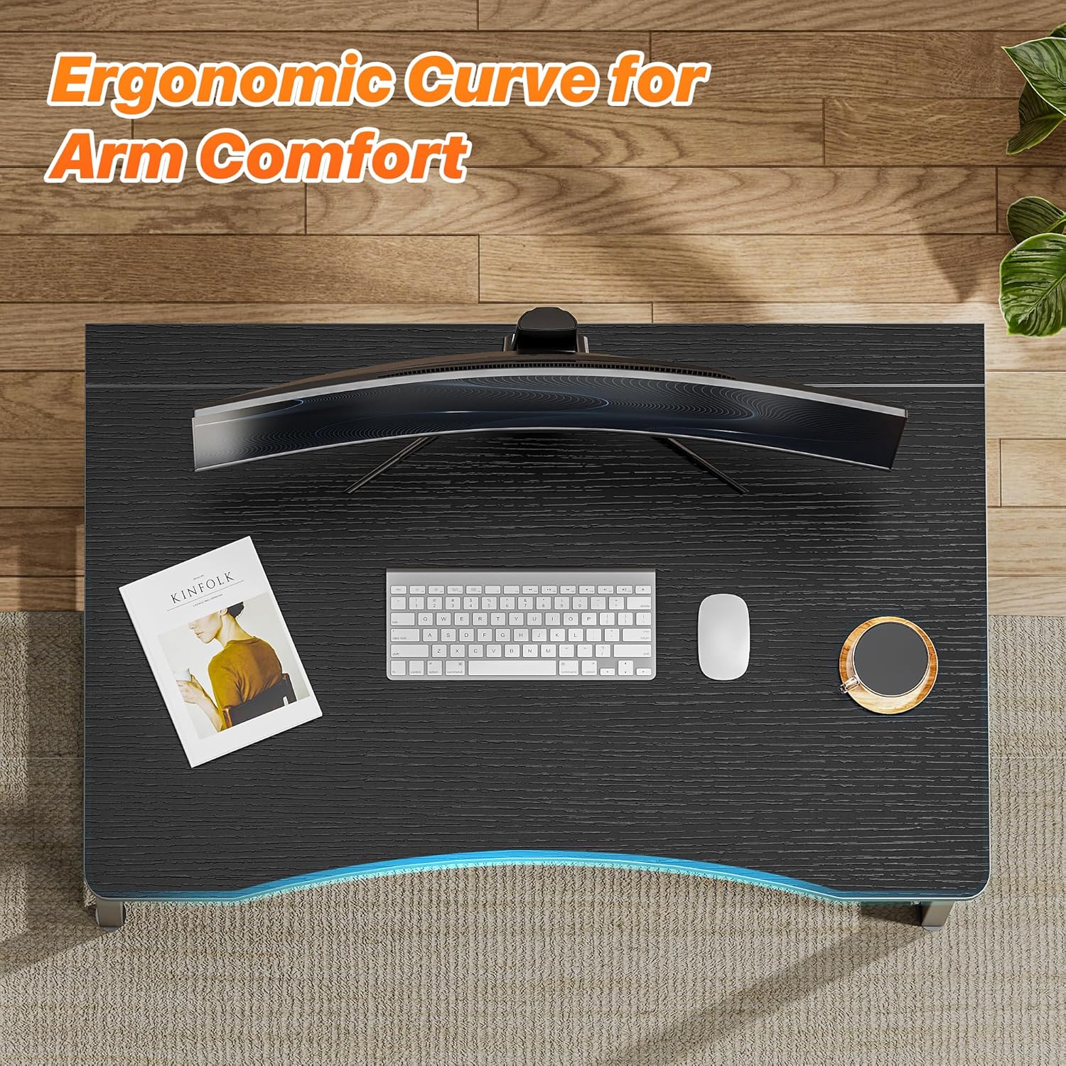 - ă18.9 Inch Deeper DesktopăDeeper desktop of the foldable office desk offer more space for laptop, notes and books... Sturdy 18mm thick steel legs and X-frame support make this home office desk stay rock-solid, less wobbling here. Say goodbye to sharp edges! The smooth, body-friendly curved desktop eases your hands, providing a more comfortable experience whether youâre working, studying, or doing makeup