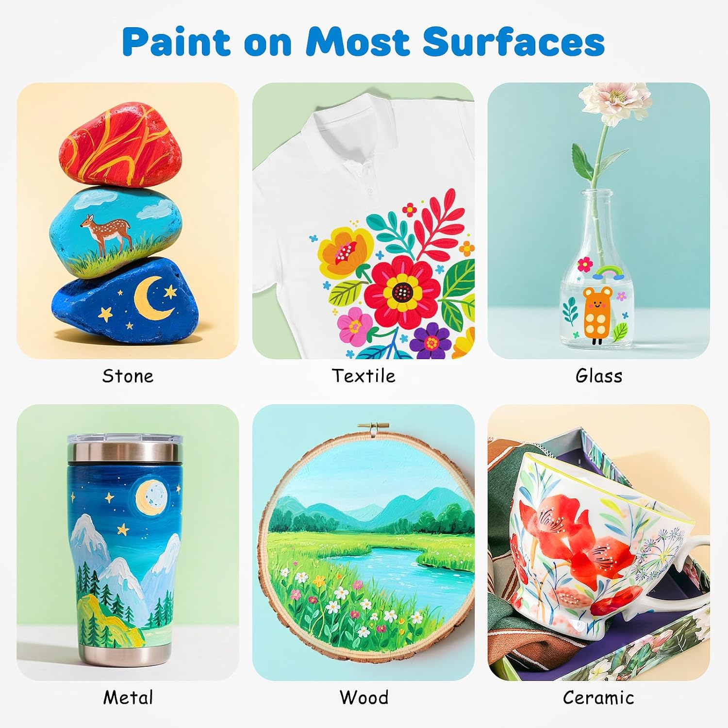 - Safe and Worry-free: Passed the international ASTM D-4236 safety certification, 0 heavy metals added, truly non-toxic and harmless. The pen body of permanent markers has no burrs and no sharp corners. The acrylic paint pens are mild and has no irritating odor, so children aged 3 and above can also use it safely with their parents, which is an ideal choice to replace traditional dust pens.