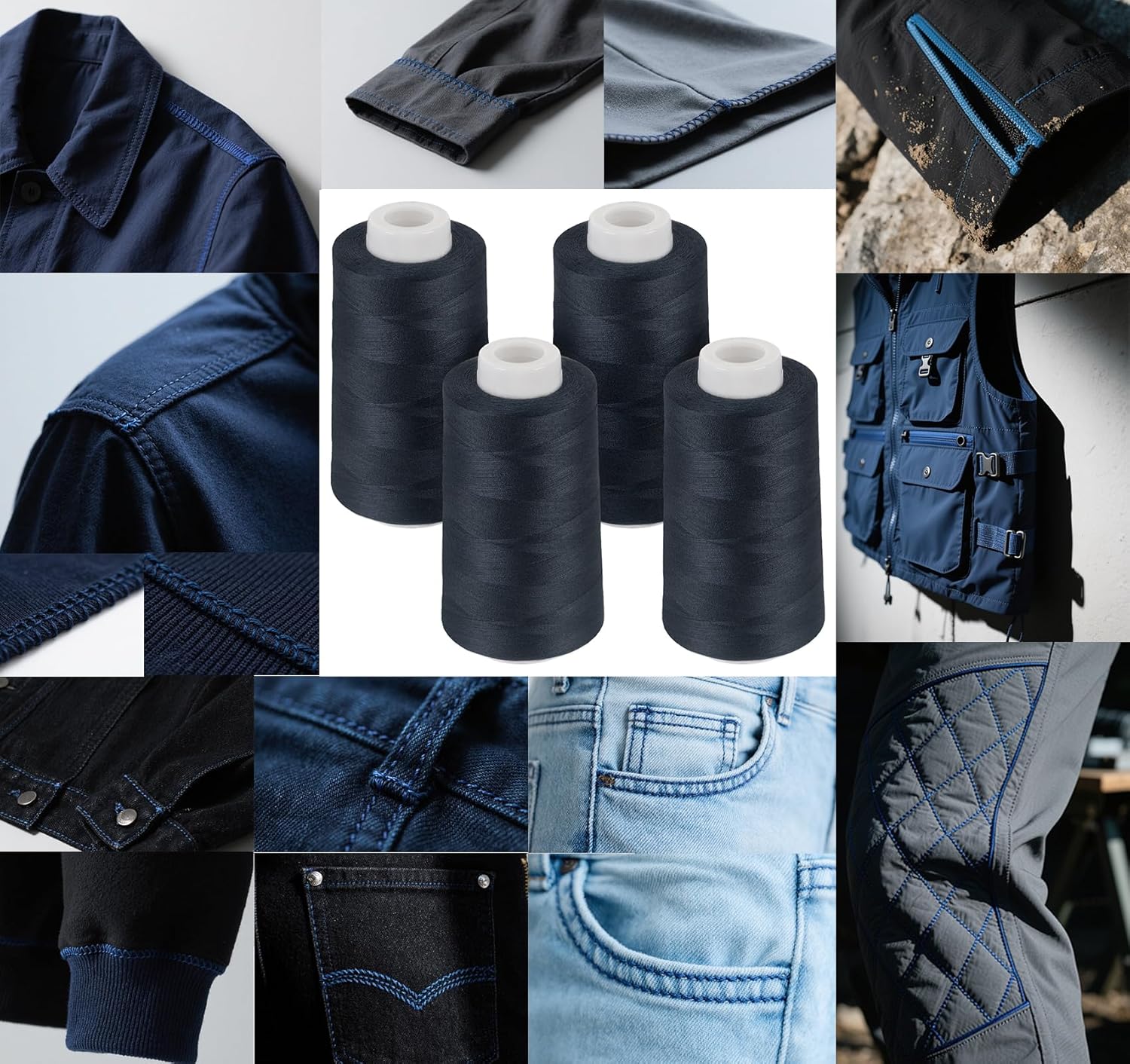 4 Pack Navy Blue Thread, 3000 Yards Denim Thread for Jeans, Polyester Sewing for Serger&Overlock, Quilting, Piecing, Sewing Machine