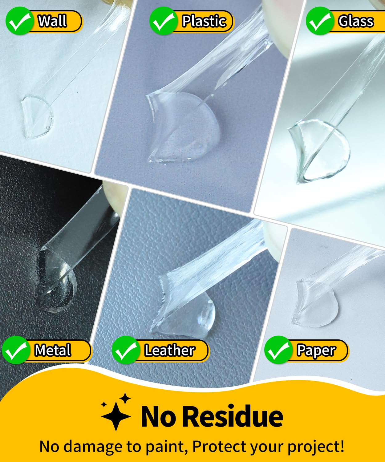 - ๐๐๐จ๐ฎ ๐๐ค ๐๐จ๐ & ๐๐ค ๐๐๐จ๐จ: Instant bonding sticky tack dots with no mess, no tools, no need to long wait for the glue to dry, just peel from the adhesive sheet and stick to where you want. You can totally get rid of the mess of traditional liquid glue or adhesive tape. Our clear removable gel glue putty are faster, safer and cleaner.
