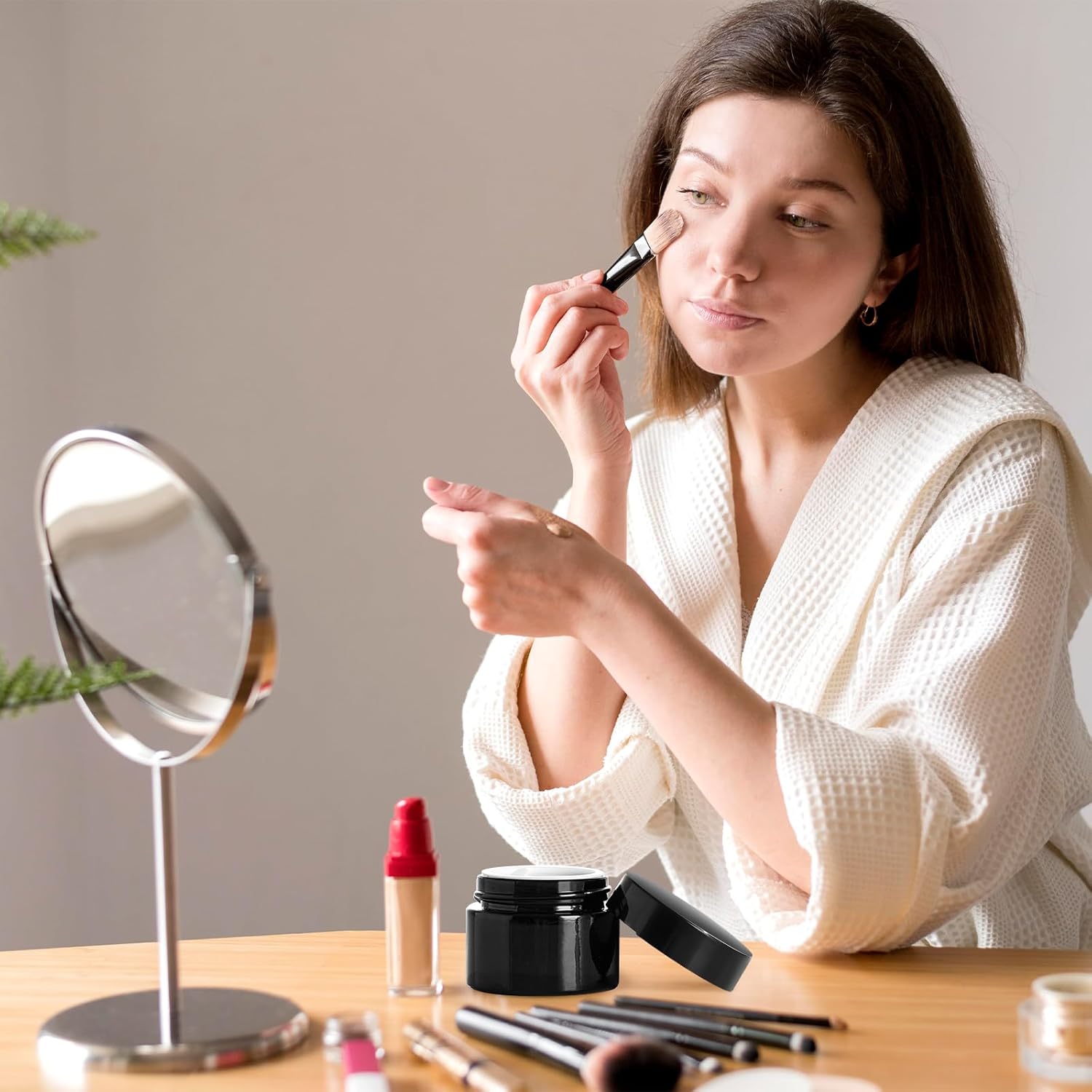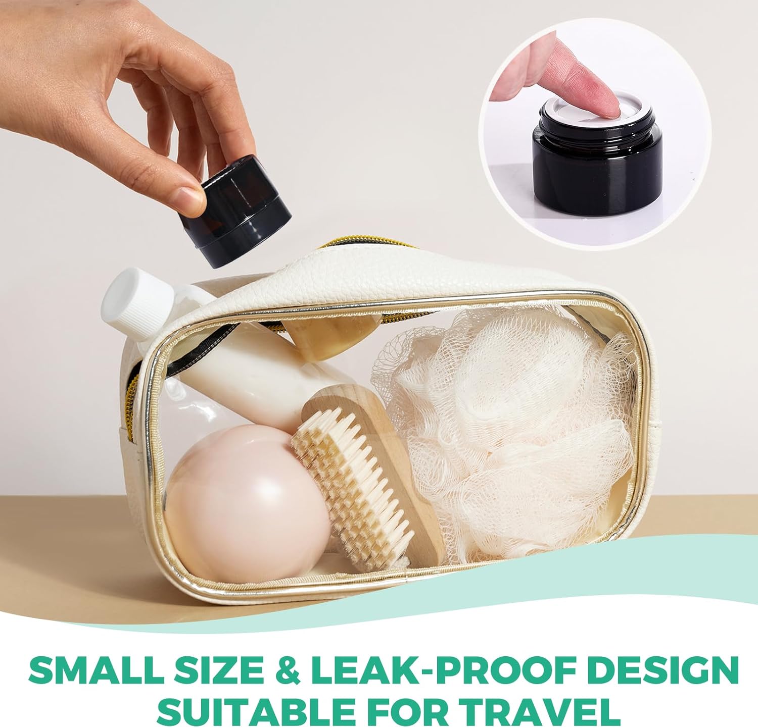 - Portable Size: Choose from three compact sizes—1oz(1.4"x2"), 2oz(2.16"x1.89"), or 4oz(2.68"x2.36"). Their slim profiles fit perfectly in cosmetic bags or luggage, making skincare accessible anywhere, anytime