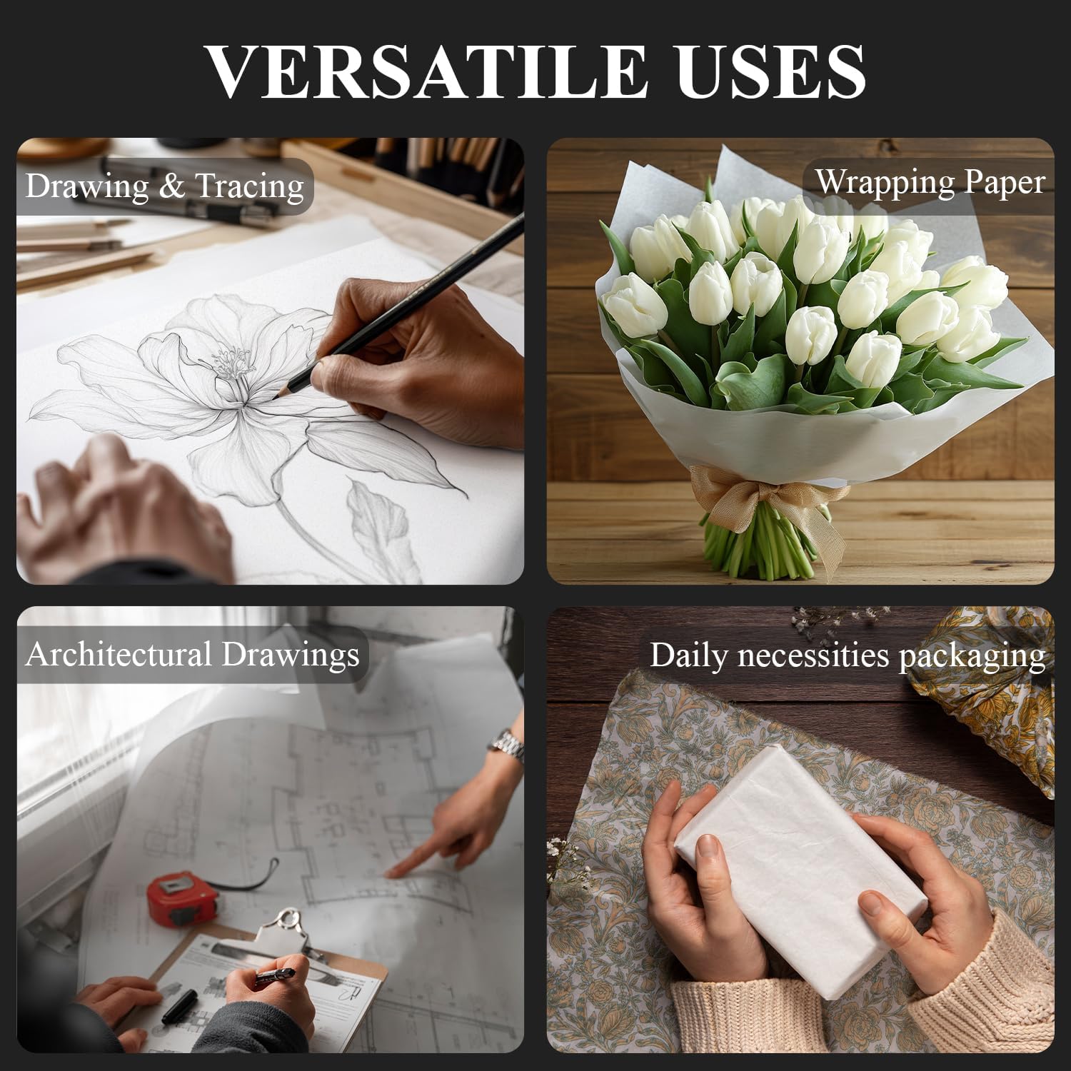 - Compatible with Various Tools: This tracing paper roll supports multiple media such as pencils, pens, markers, and ink. Its smooth surface resists smudging and bleed-through, making it easy to trace or outline detailed designs. Whether you're creating overlays or drafting diagrams, this tracing paper roll is built for precision.