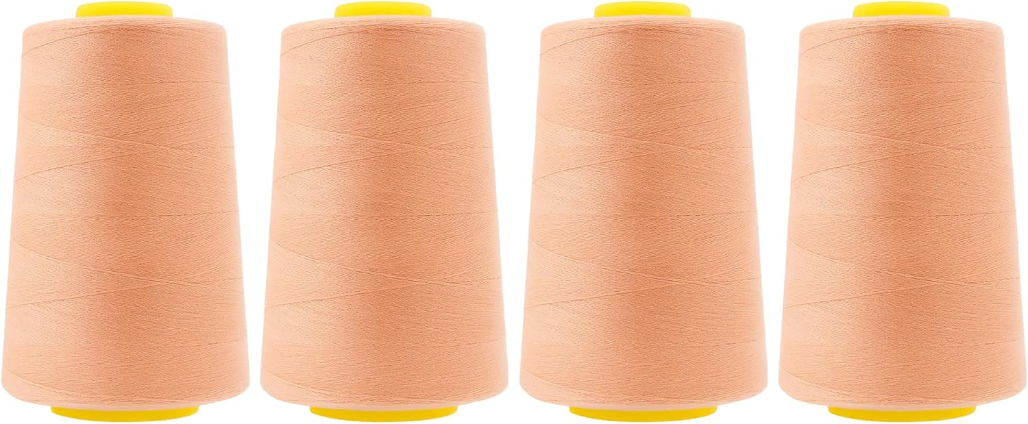 Mandala Crafts 4 Pack of Serger Threads Cones Spools - 40S/2 24000 Yards Polyester Peach Threads for Sergers Machine and Overlock Quilting Sewing Machine