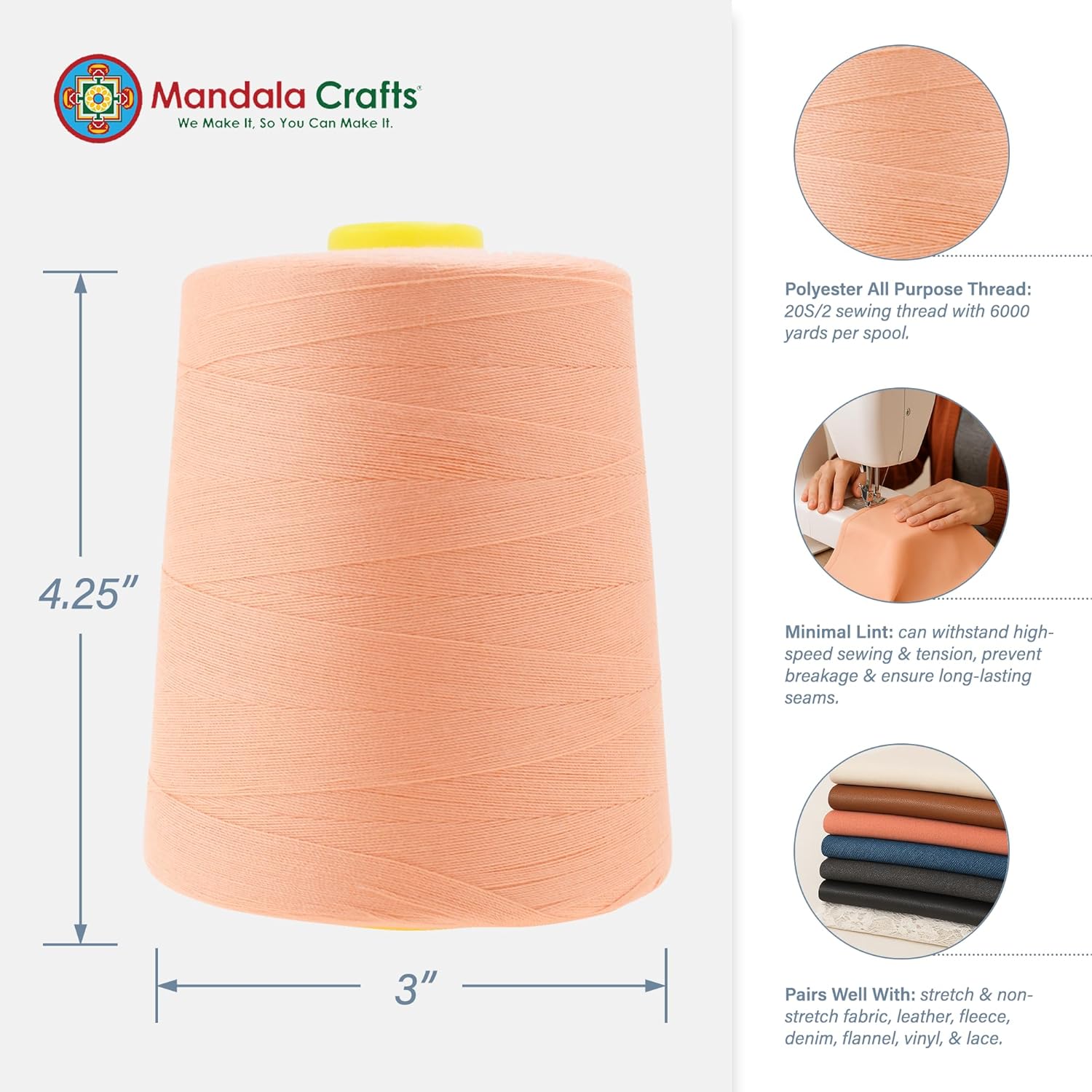 Mandala Crafts 4 Pack of Serger Threads Cones Spools - 20S/2 24000 Yards Polyester Peach Threads for Sergers Machine and Overlock Quilting Sewing Machine