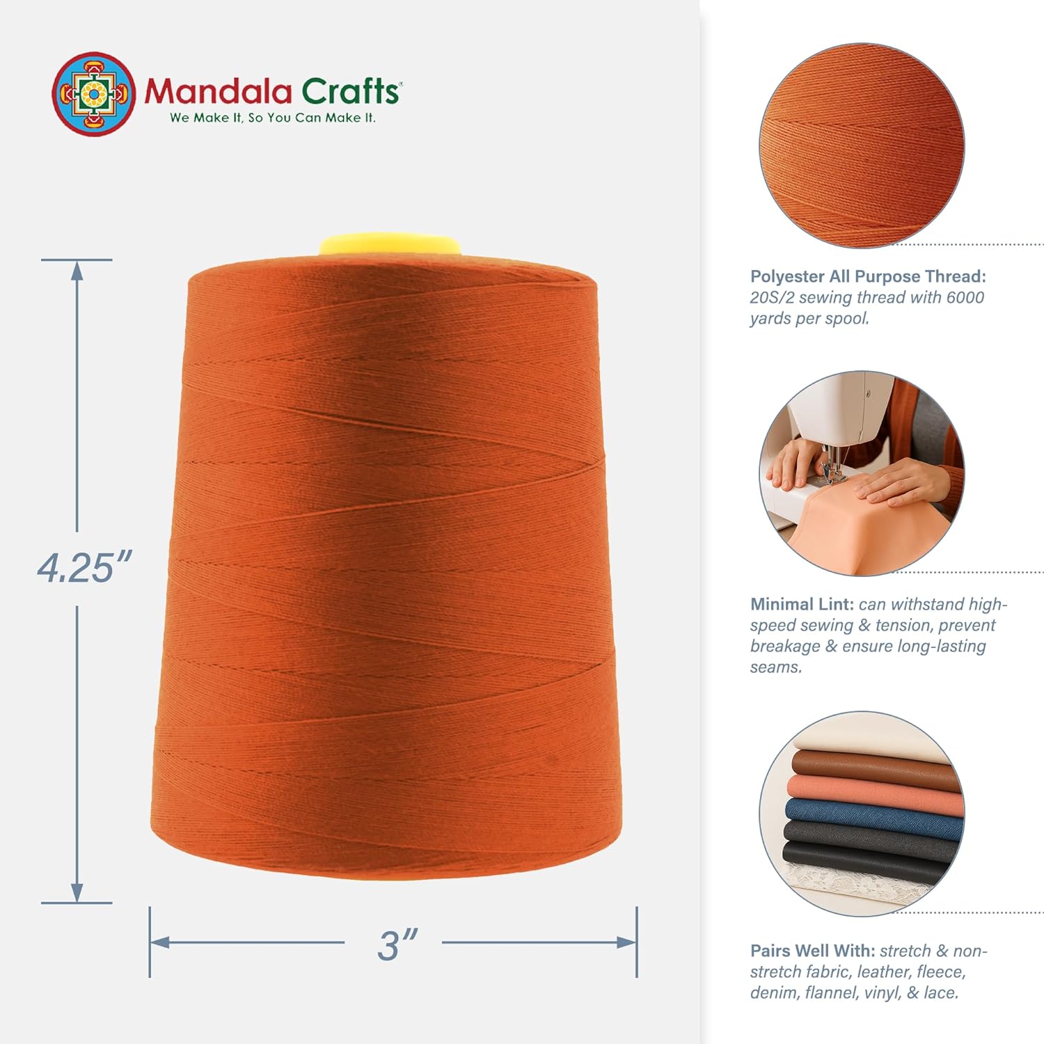 - Easy to Use Burnt Orange Sewing Thread Cones: The burnt orange sewing thread lays flat and goes through loopers & needles without friction & yields clean lines. The serger sewing thread pairs well with stretch & non-stretch fabric, leather, fleece, denim, flannel, vinyl, & lace.