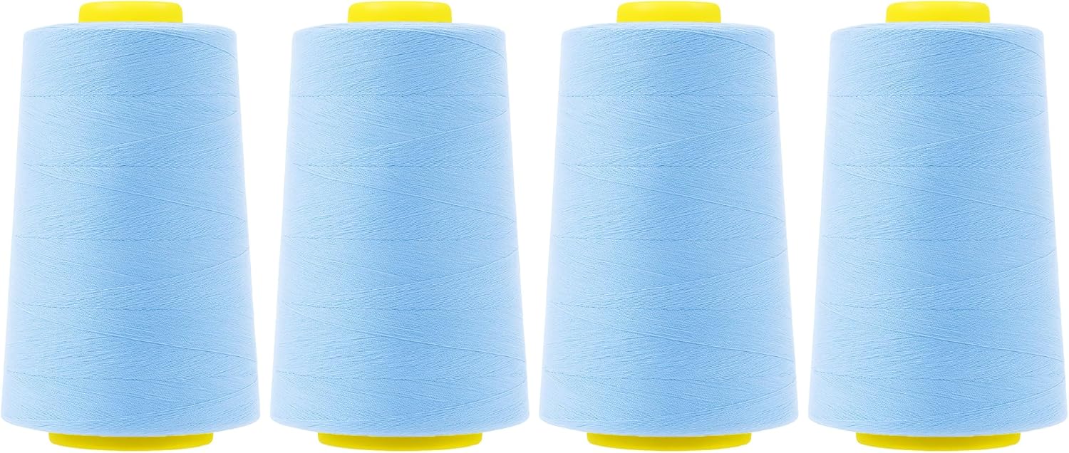 - Ice Blue Serger Thread Cones 4 Pack: The thread or hilos para coser is knot-free and non-stretch, serving as great ice blue all-purpose thread for sewing, serging thread, sewing machine threads, coverstitch thread, overlock thread, & longarm machine quilting thread.