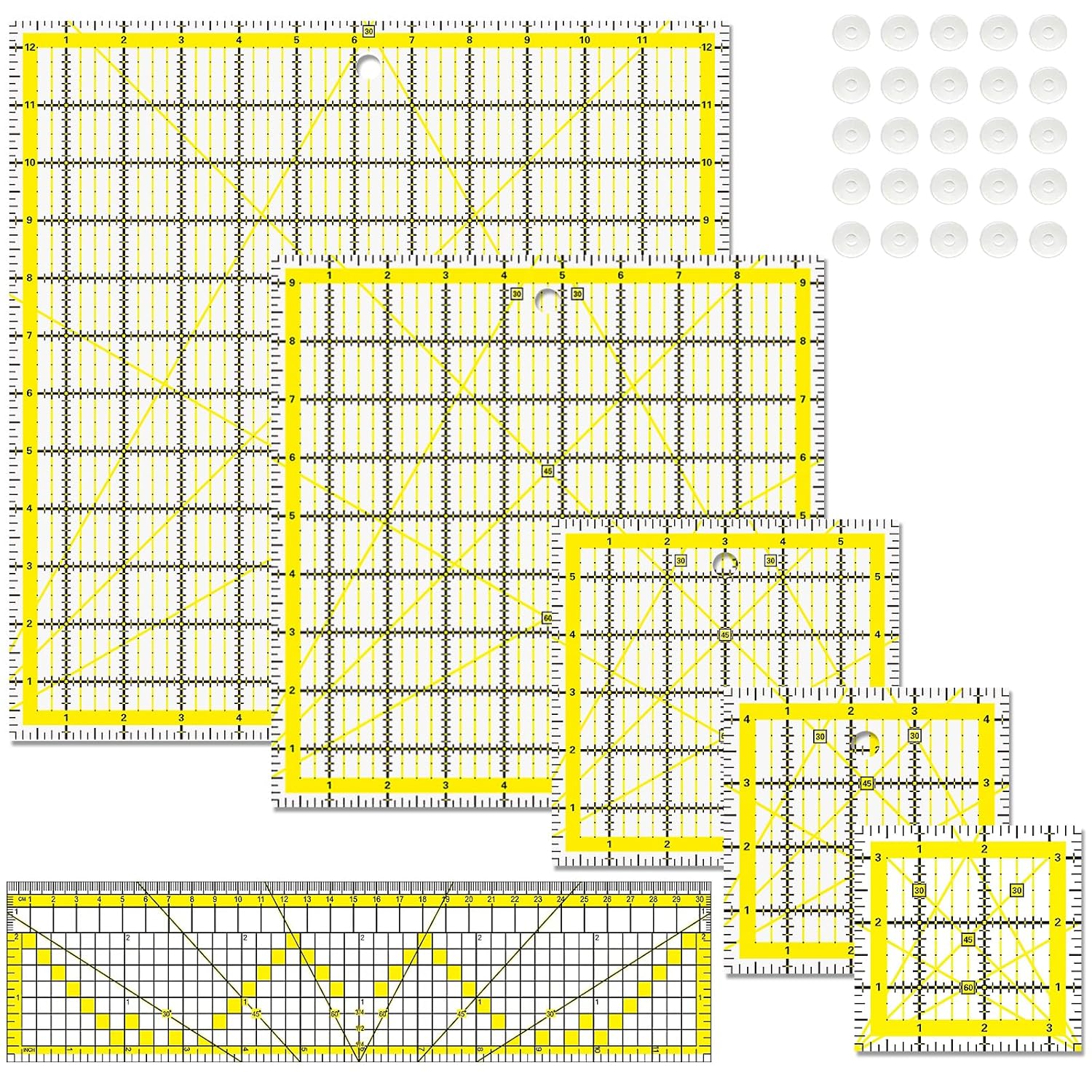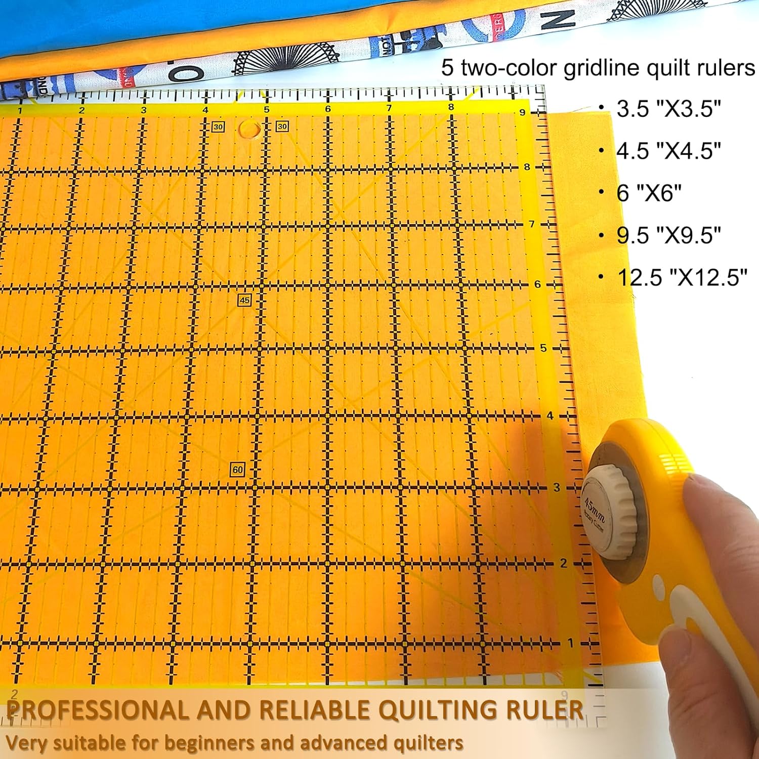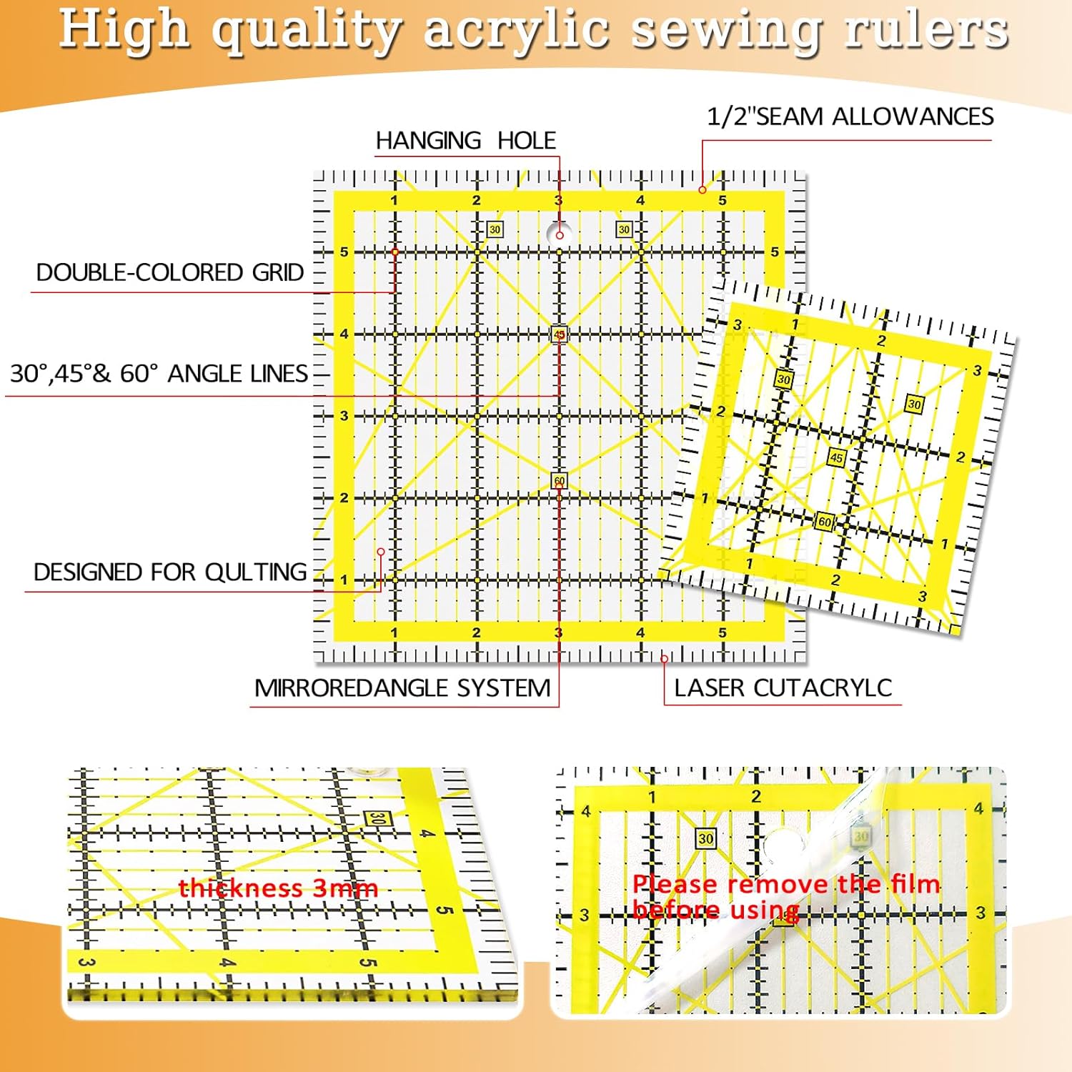 - Set: This quilting ruler set includes 6 different sizes (2.78"x12", 3.5"x 3.5", 4.5"x 4.5", 6" x 6", 9.5" x 9.5", 12.5"x 12.5") to meet your different needs.