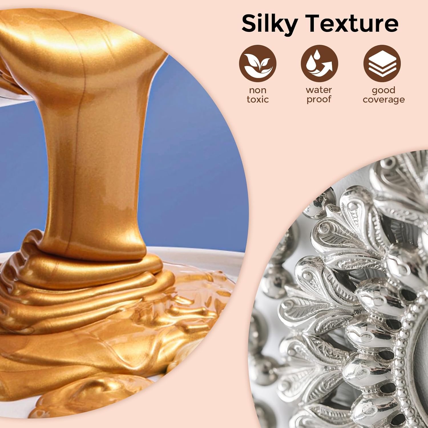 - Stunning Metallic Finish: Nicpro metallic acrylic paint set includes 6 colors Gold, Silver, Copper, Brass, Bronze, and Deep Gold. Each dries to a high-gloss metallic finish that delivers a rich, reflective shine with a gold leaf-like effect—perfect for canvas art, home décor, and seasonal crafts.