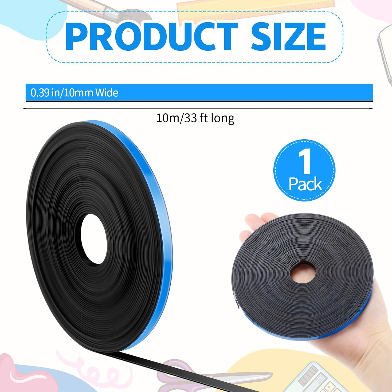 - Magnetic Board Dividers: with a size of 0.39 inch X 33 feet/10 mm x 10 m, the magnetic tape offers ample length allowing you to utilize it for multiple applications; You can use this magnetic tape thin strip to create grid lines and decorations on whiteboards and other metal surfaces