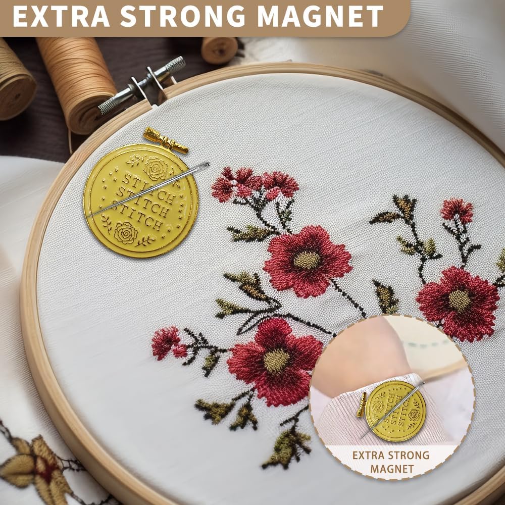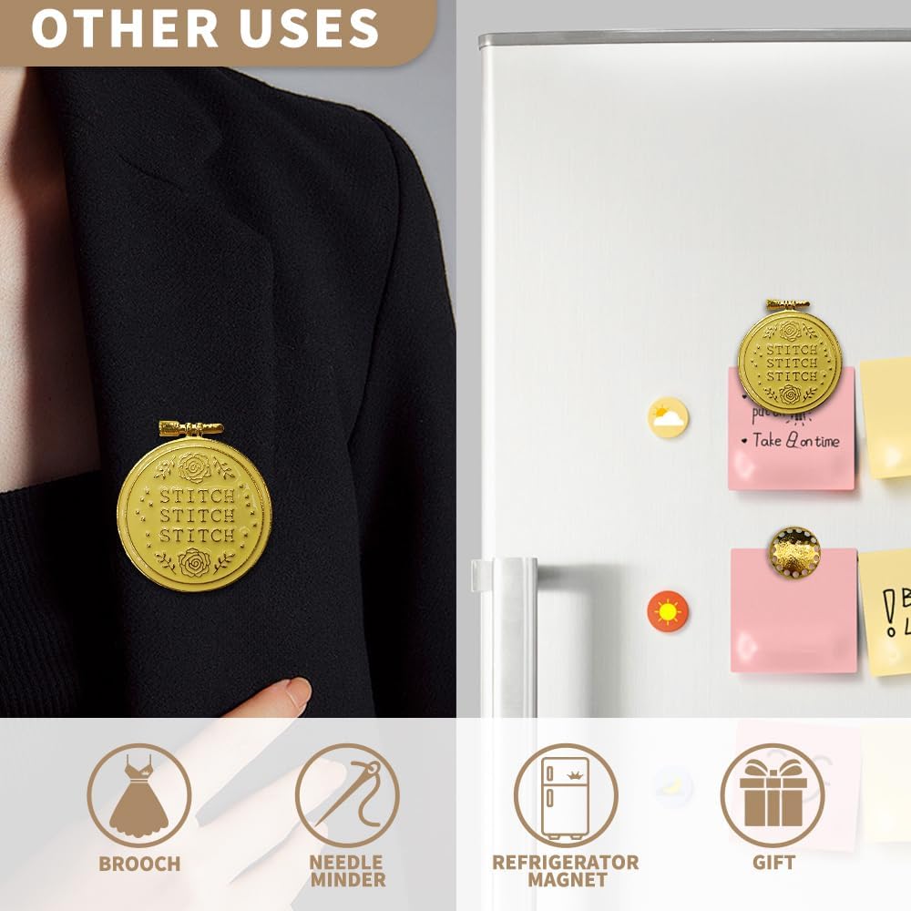 - ★FABRIC GUARDIAN★ Needle minder magnet comes with two strong magnets. One attached to the back of embroidery hoop, and one to hold it down onto your fabric from back. Simply chuck your needle down whenever you need to take a break. Magnet needle minder will hold it down for you ensures your delicate fabric remain free from unwanted punctures or damages.