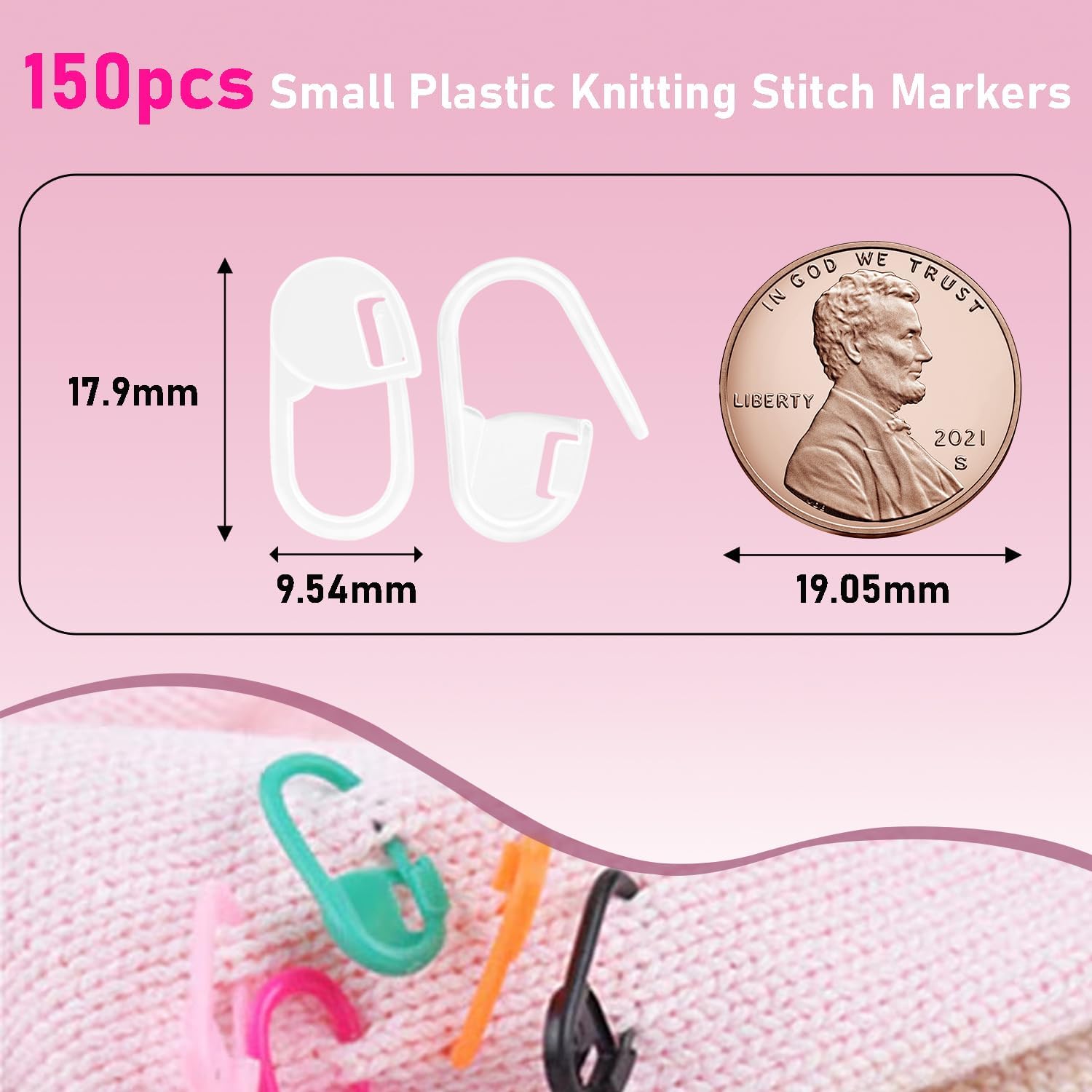 150 PCS Plastic Knitting Stitch Markers for Crocheting, Crochet Stitch Marker for Yarn Crafts Knitting Weaving Locking Plastic Safety Pins Crochet Supplies Accessories, White