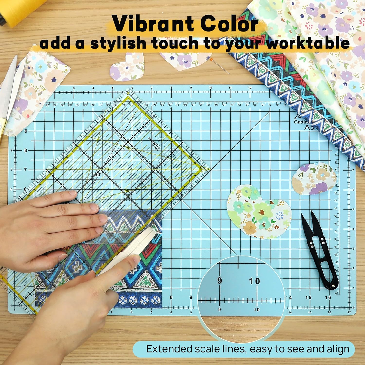 - ăStop Lifting and GuessingăThe extended scale lines will not be covered by fabric or ruler, no more lifting the fabric repeatedly to check lines. Perfect for quilting stars or any other complex patterns, cutting multi-layer fabric, and creating handmade models