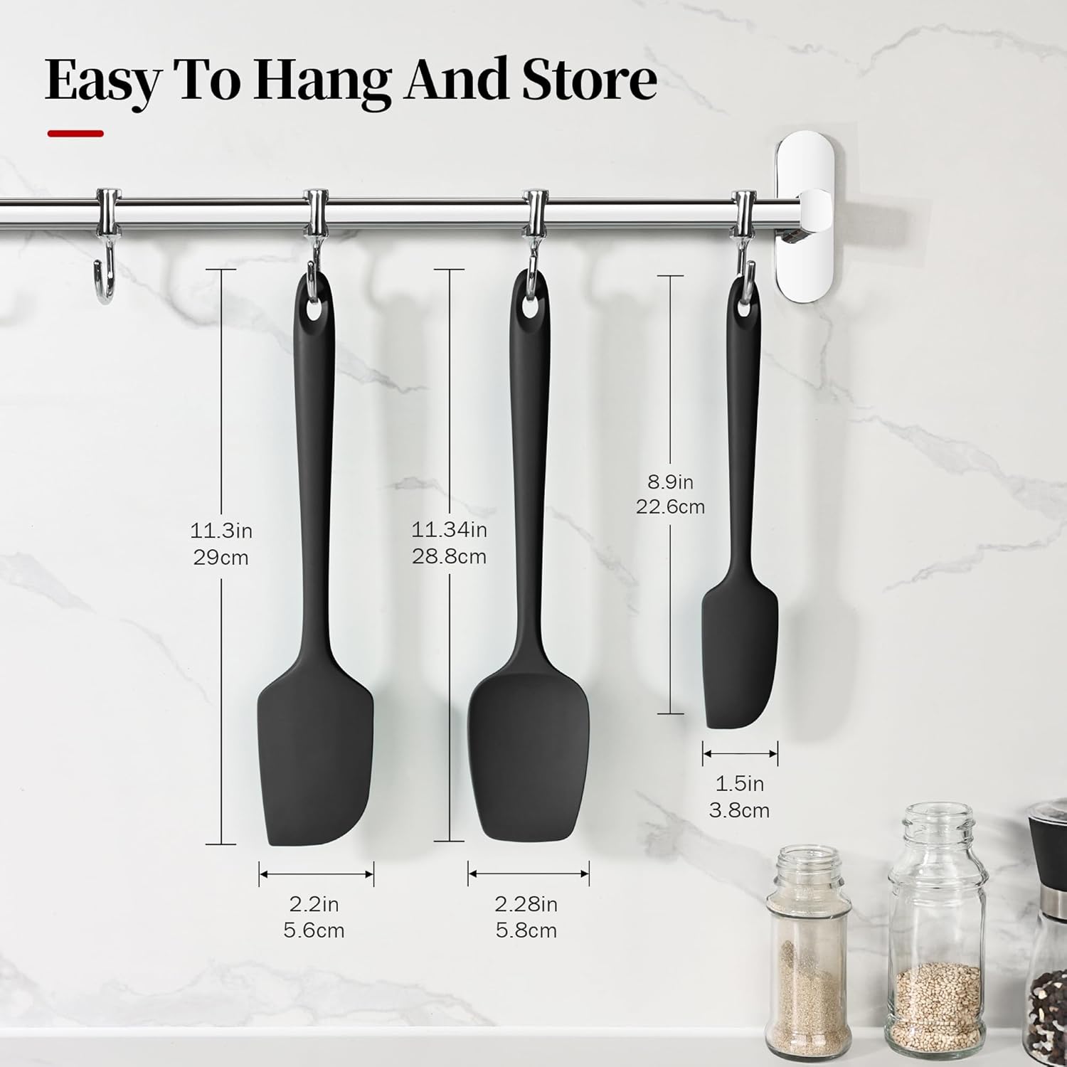 - [Seamless Design & Dishwasher Safe & Easy Storage] This baking spatula set's smooth surface keeps food from sticking, so messy ingredients like caramel or melted cheese wash off easily. Made as semless construction, there are no hidden spots for food to get stuck. It's tough enough for daily dishwasher use, and the handy loop makes storage simple and keeps your kitchen tidy. Whether you're scraping peanut butter or mixing batter, cleanup takes seconds—just rinse and go.