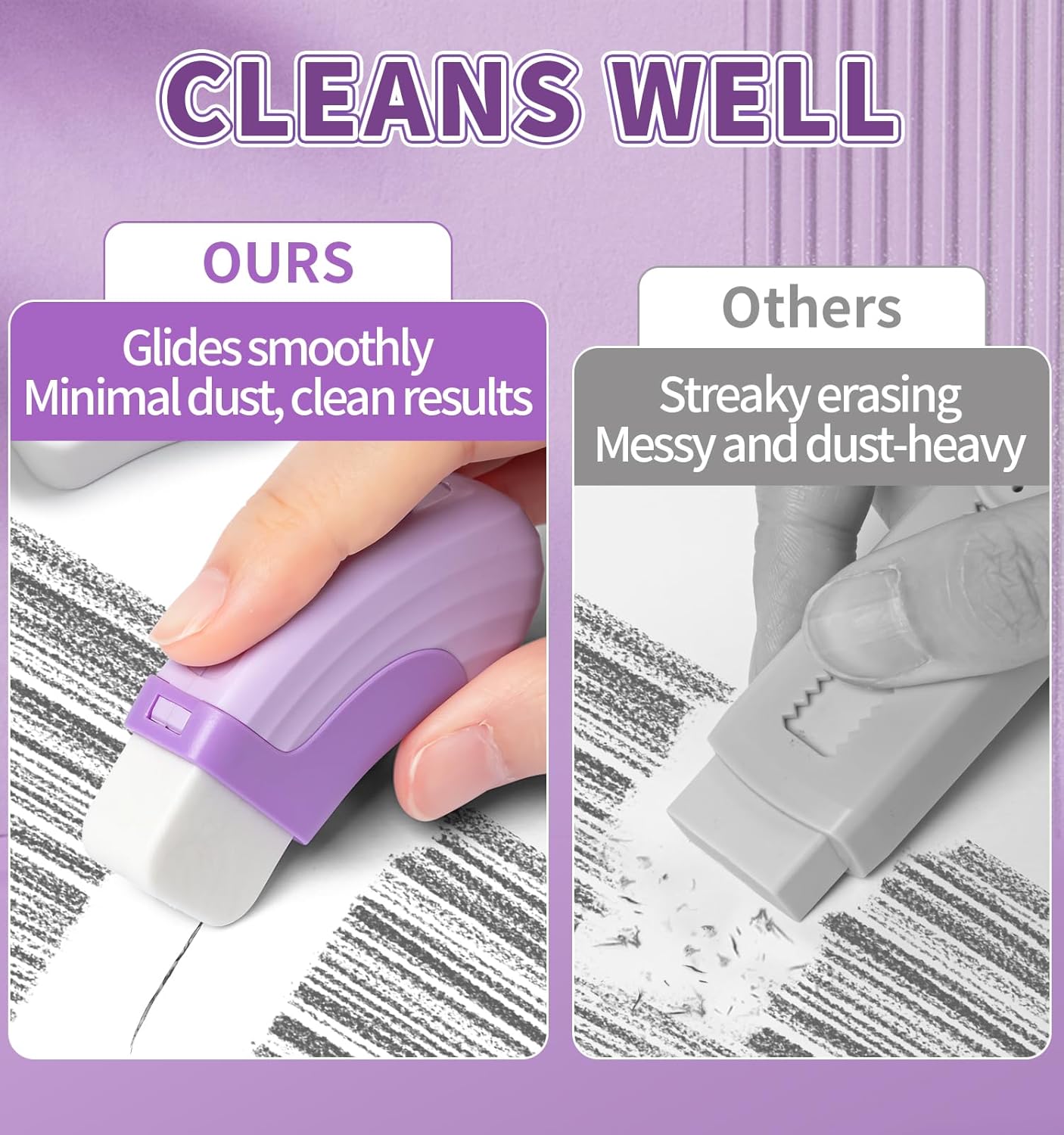 - Efficient Erasing: Achieve clean and precise erasures with this retractable eraser. It generates minimal debris, and the eraser shavings neatly align in a row, simplifying cleanup and helping you maintain a clutter-free workspace.