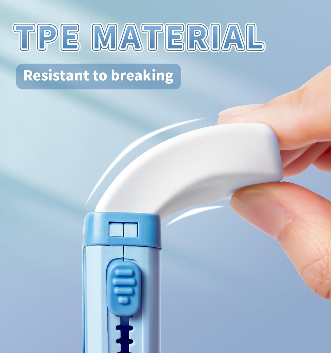 - High-Quality TPE Material: This eraser is crafted from durable TPE, known for its resistance to breakage. Unlike traditional erasers, this pencil eraser stays intact even with frequent use, providing long-lasting performance.