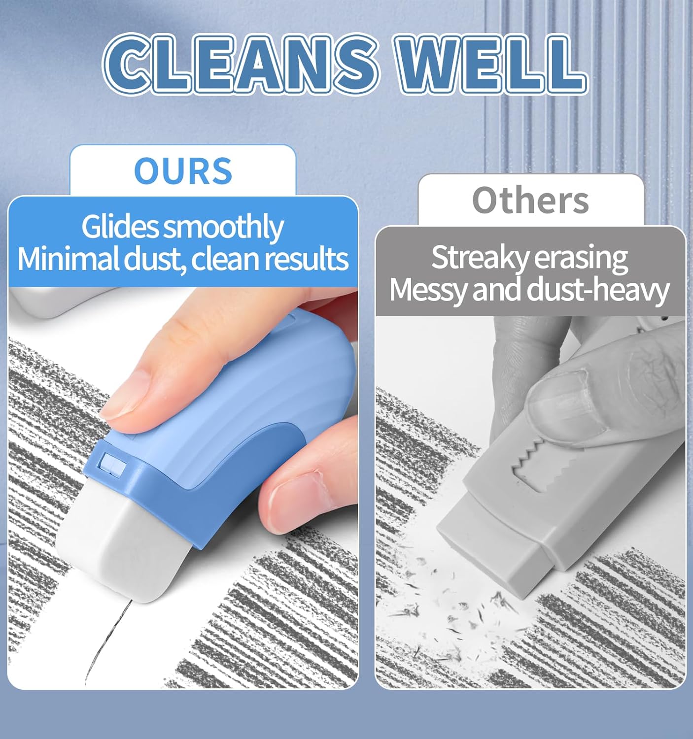 - Package Contents: Includes a premium eraser with 4 replacement cores, ensuring you always have a fresh eraser on hand. The compact design is ideal for students and professionals alike, making it a versatile addition to any desk or pencil case.