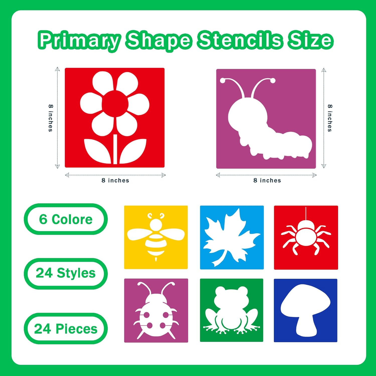 24 Pieces for Kids,Large Drawing Chalk,8 Inches Washable Shape Template Kit for Kids Crafts,Painting Drawing,School Projects (Garden, 8 inch)