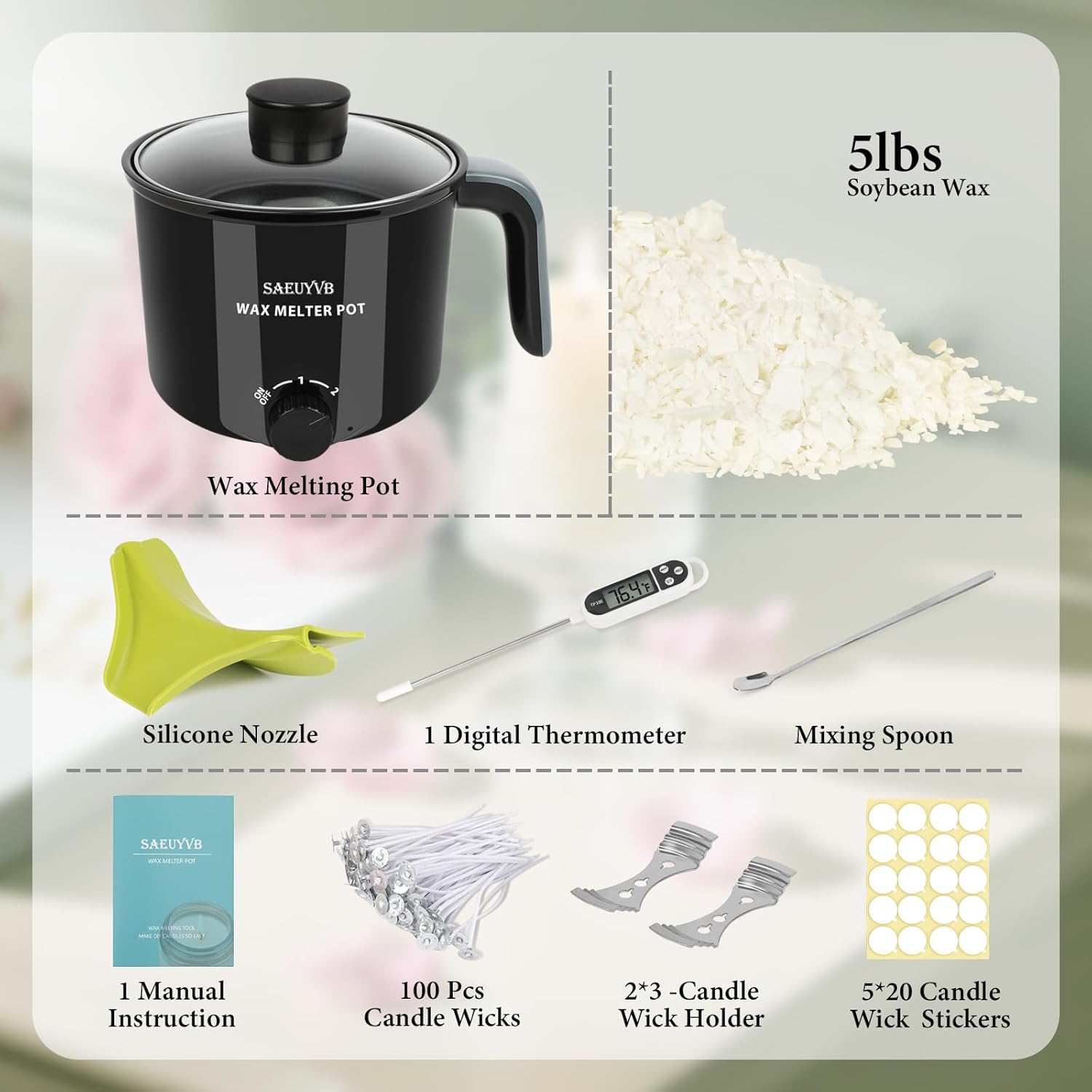 SAEUYVB Candle Making Kit,Soy Wax for Candle Making,DIYCandle Making Supplies,Including 5lbs Natural Soy Wax Flakes,Wax Melter,Thermometer,Wicks,Candle Kit for Adults,Beginnner