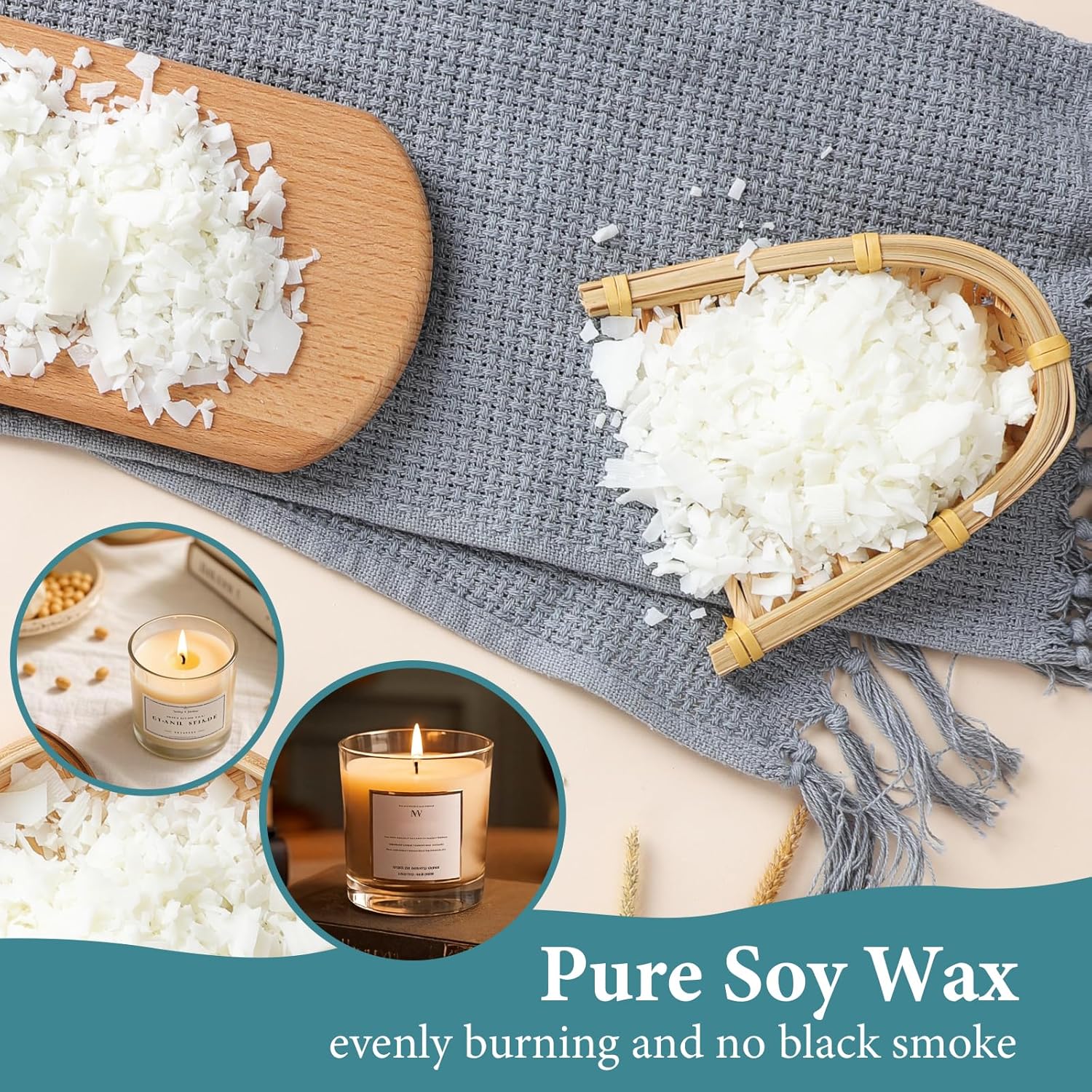 - 🎀【Natural Soy Wax】:Our candle wax is 100% soy wax,which burns evenly,is clean,and has an excellent scent throw.Candle wicks are 100% cotton,so our wax will burn very well,no unpleasant smell during the burning process can be used with confidence!Our candle kit comes with 5 pound wax flakes,which can meet your various DIY needs.