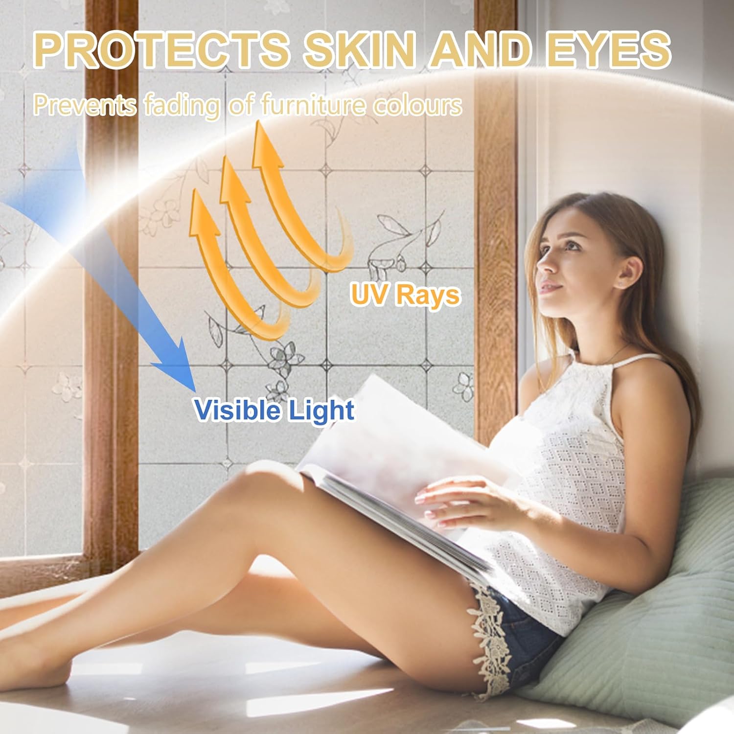 - Privacy and Comfort - Enjoy natural light without the unwanted attention from outside. This privacy film gives you both comfort and peace of mind by letting in soft daylight while blocking outside views β no need to close the blinds or pull down the curtains. Anti-Glare β reduces harsh sunlight, making it easier to read or work on your computer without glare or eye strain.