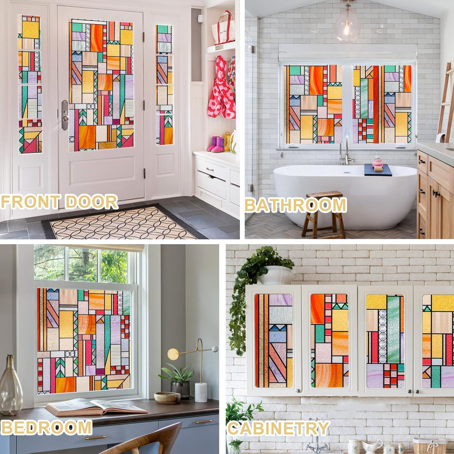 - Easy to Install and Window Friendly-Installation is a breeze with our Static Cling Decorative Stained Glass Film, which requires no adhesive. It is reusable and repositionable without damaging your windows and comes with a spray bottle and squeegee for your convenience.