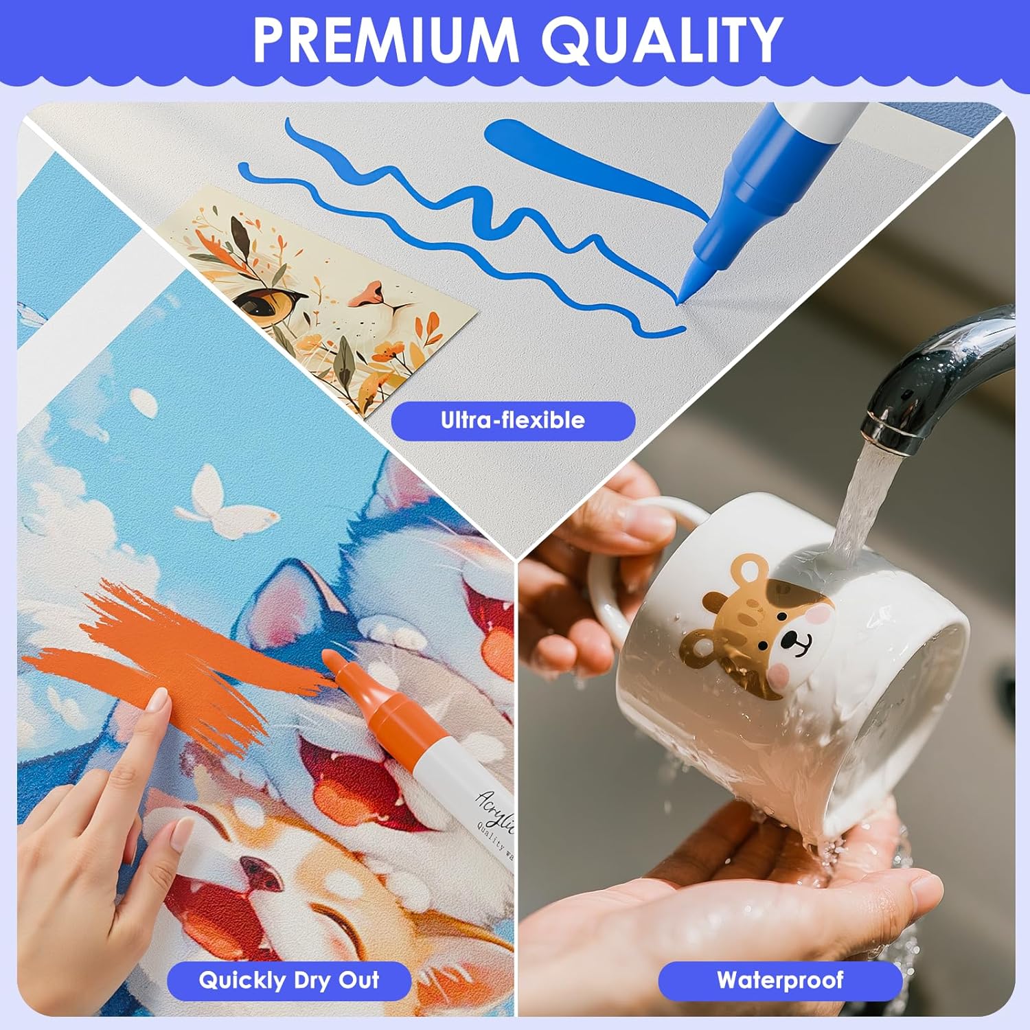80 Colors Dual Tip Acrylic Paint Markers, Fabric Markers, Brush Tip Permanent Acrylic Paint Pens for Wood, Glass, Rocks, Paper, Coloring book,Ceramic,DIY Crafts for Adults,Kids and Art School Supplies