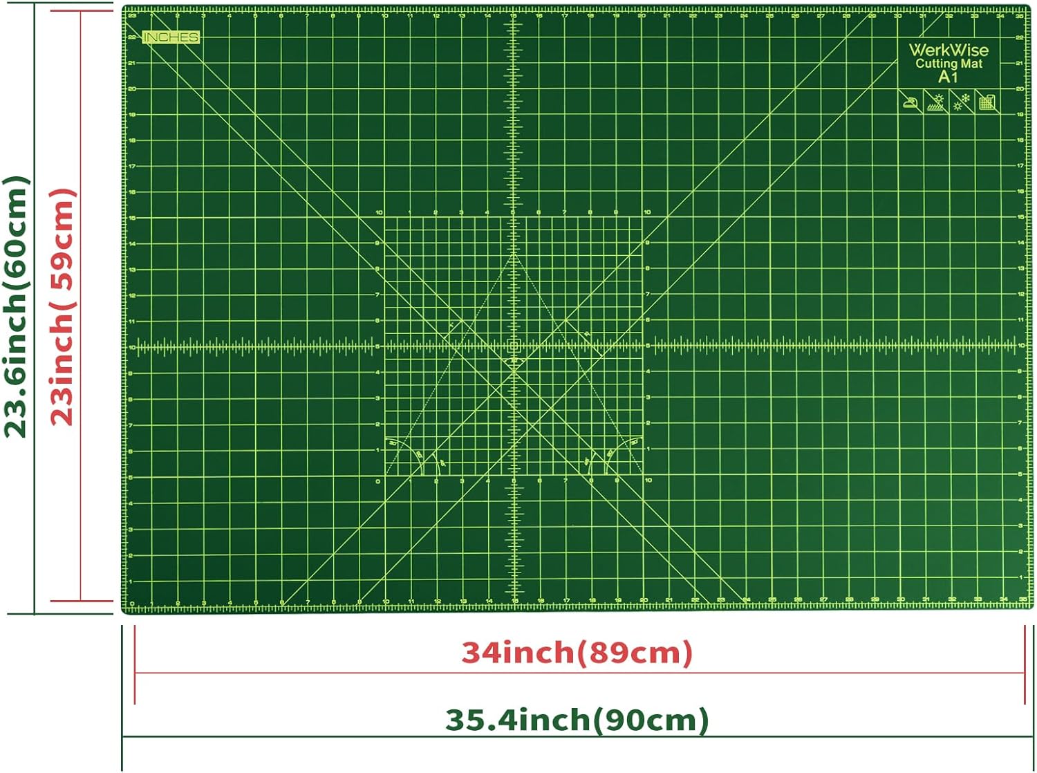 - 【A1 CUTTING MAT】Accurate cutting double sided, both inches and metric gridlines & angles.Mat size: 35.4 x 23.6inches(90 x 60cm), Grid size: 34 x 23inches(89x 59cm), thickness 3MM, different angles 30°45°and 90°,Easy to read