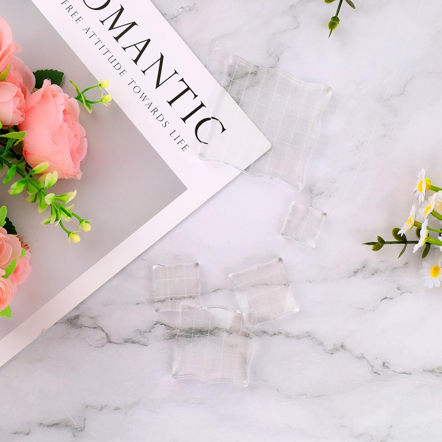5PCS Clear Acrylic Block for Stamping, Acrylic Stamp Block Stamping Tools for DIY Crafts, Stamping Block Decorative Stamp Block with Grid Lines, Clear Stamping Blocks Tools Set