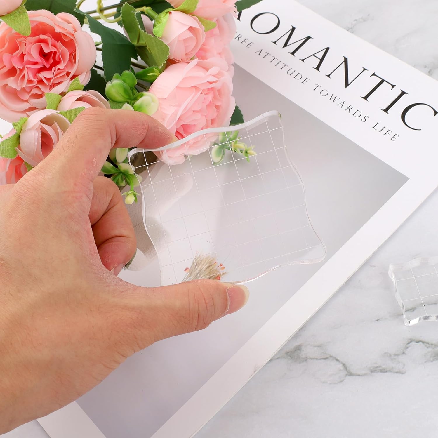 - Beautiful Lace Design: one side of the clear acrylic block for stamping is lace design, the edges are round, smooth and comfortable, which is cute and interesting, and the other side is clear and visible grid design, which can help locate the stamp image