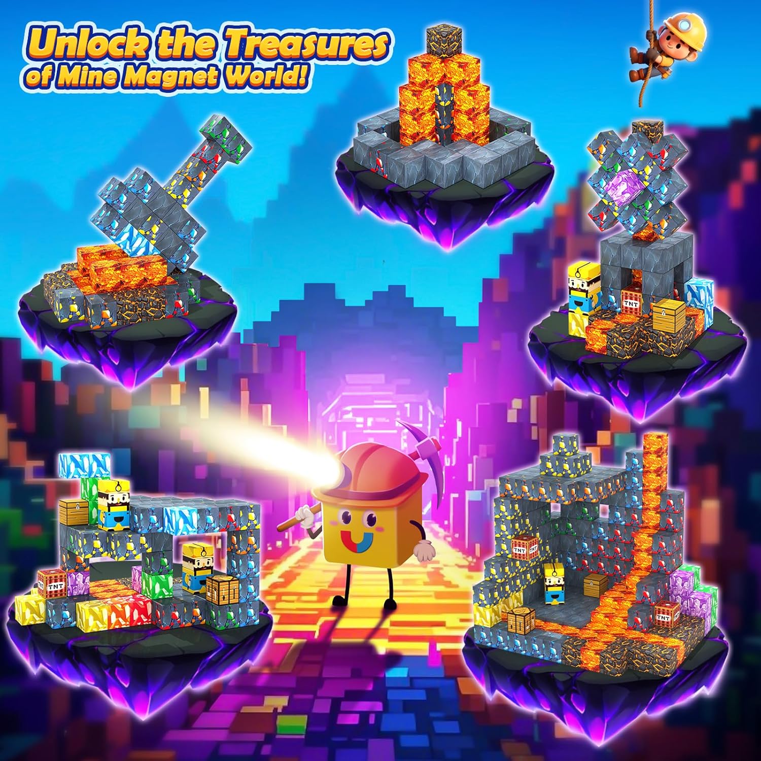 - 【Colorful Mine Adventure Awaits】Build, Create, Imagine! 100 Magnetic Blocks for Ages 4-8! Discover six dazzling diamonds, each representing rare minerals, hidden in a mysterious cave. Featuring TNT, magma, and six diamond rocks, kids can build sparkling crystal swords, tunnels and lava-filled caverns, turning playtime into a mine magnet world adventure. Spark creativity in kids who love construction toys and magnet game play, making every build a magical journey.
