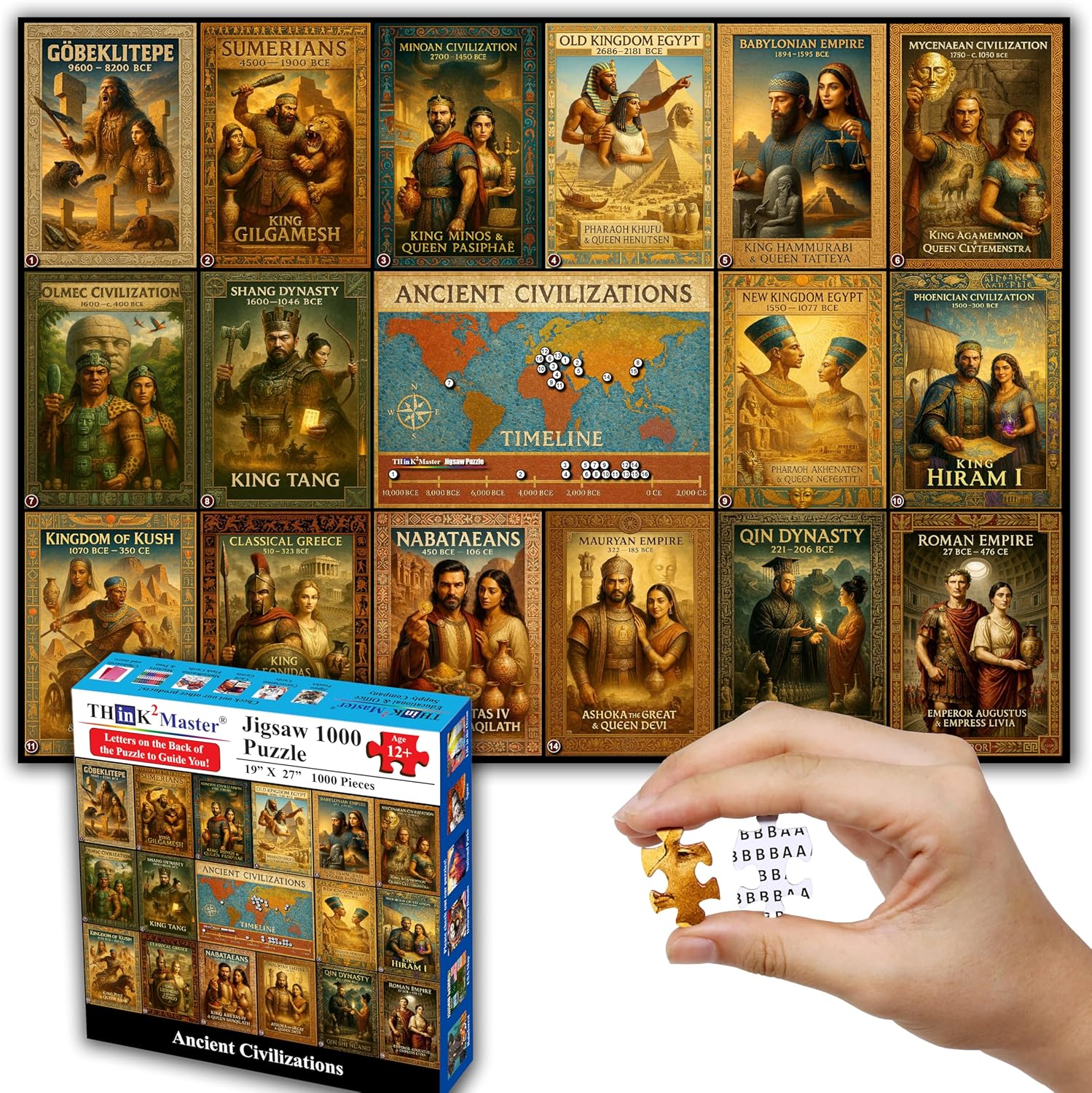 Think2Master Ancient Civilizations World History Jigsaw Puzzle 1000 Pieces Large Format for Kids 12+, Teens, Adults & Families. Great Gift. Historical Timeline & World Map. Size: 26.8” X 18.9”
