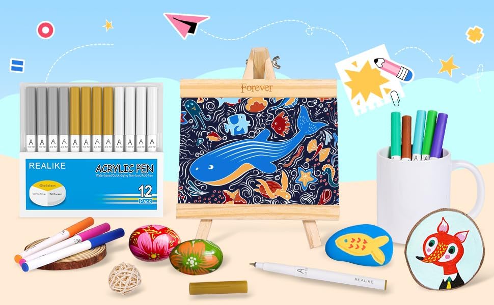 - MULTI-PURPOSE ACRYLIC PENS: REALIKE acrylic markers are suitable for multi-surface, such us paper, fabric, wood, metal, glass, rock, and ceramic etc. These water-based markers provide consistent anti fading effects, allowing you to confidently create on multiple surfaces.